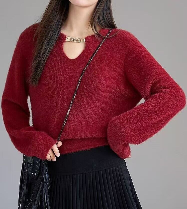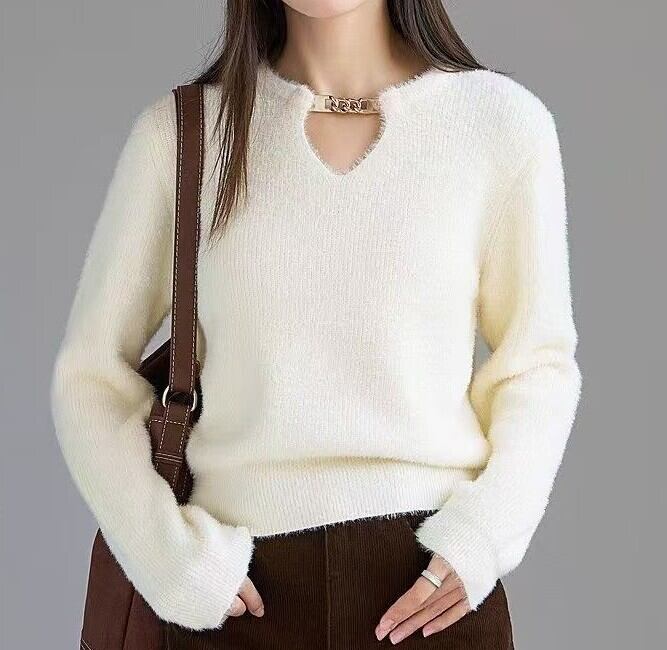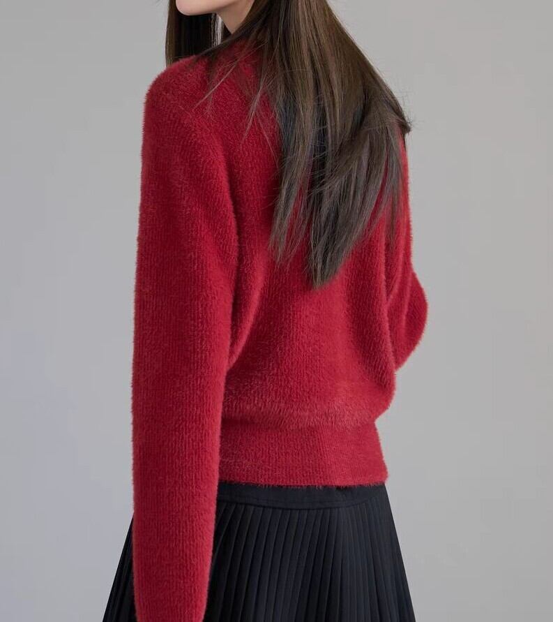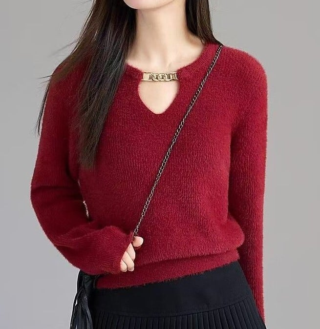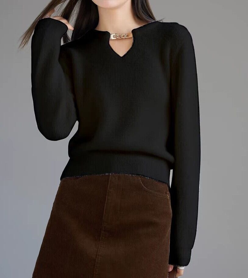 着用するだけでフェミニンな雰囲気が漂うスモールVネックエレガントスリムニット。