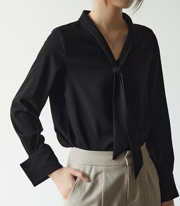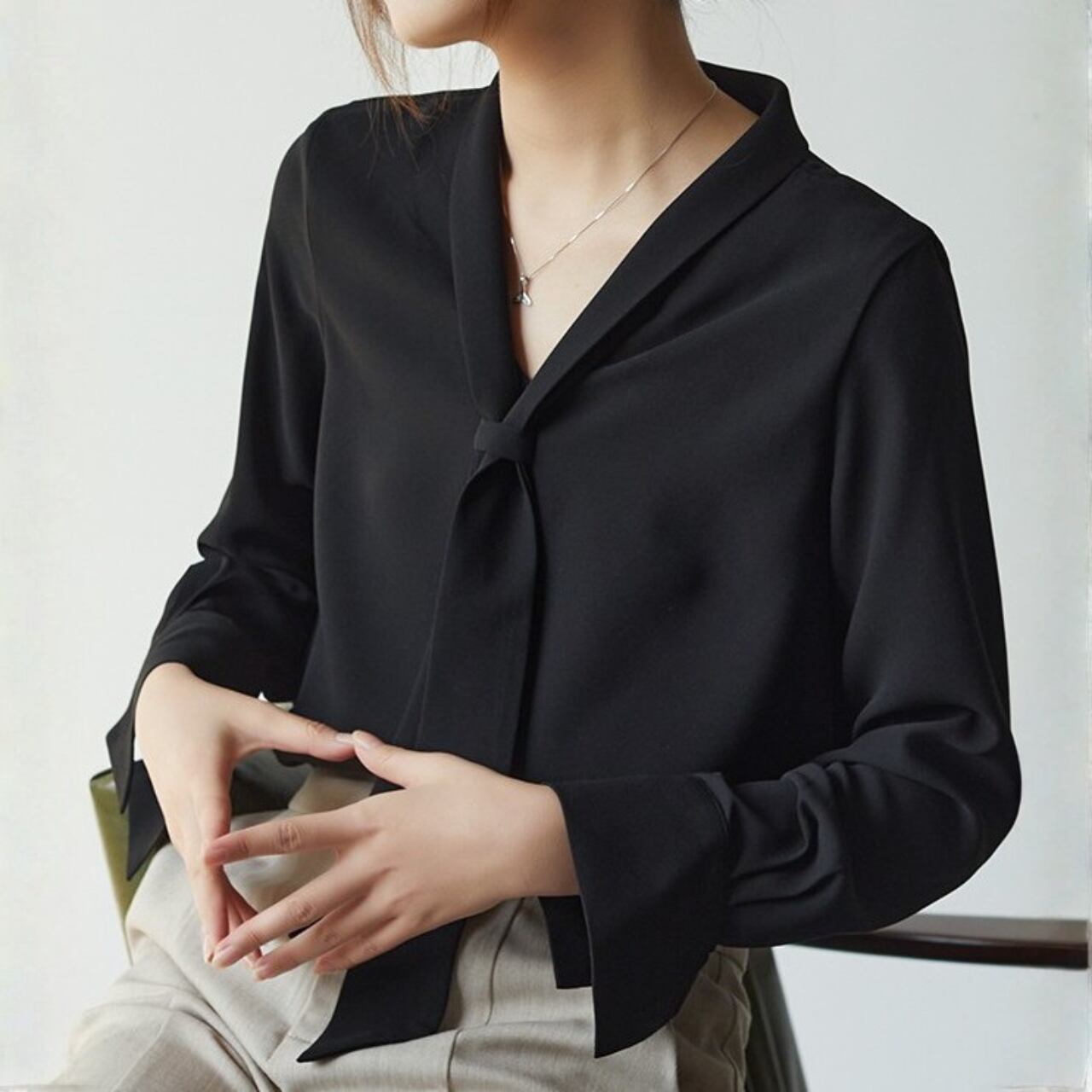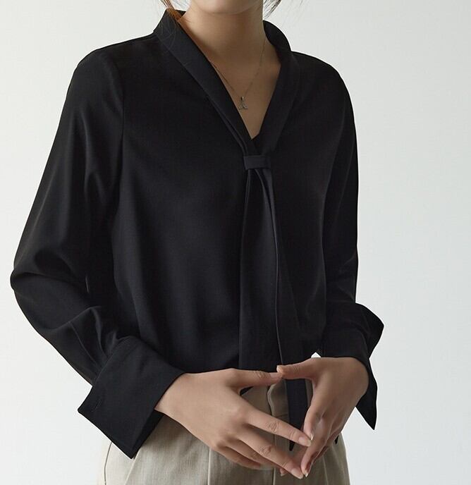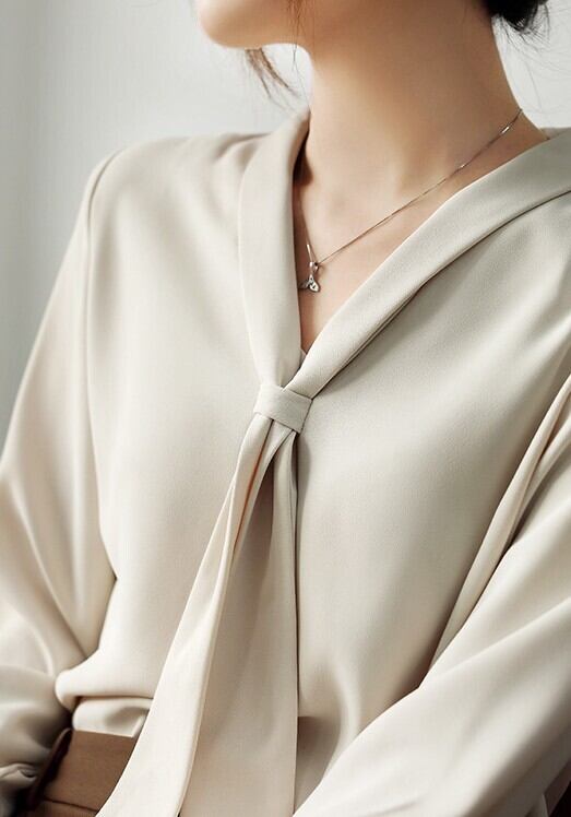 着用するだけで上品でエレガントな雰囲気が漂うチェストタイエレガントシフォンシャツ。