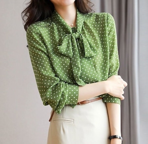 Chest tie elegant polka dot slim shirt ( 4color )