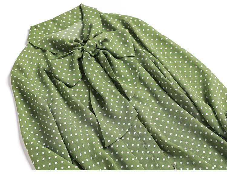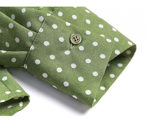 着用するだけで大人可愛い雰囲気が漂うチェストタイエレガントポルカドットスリムシャツ。