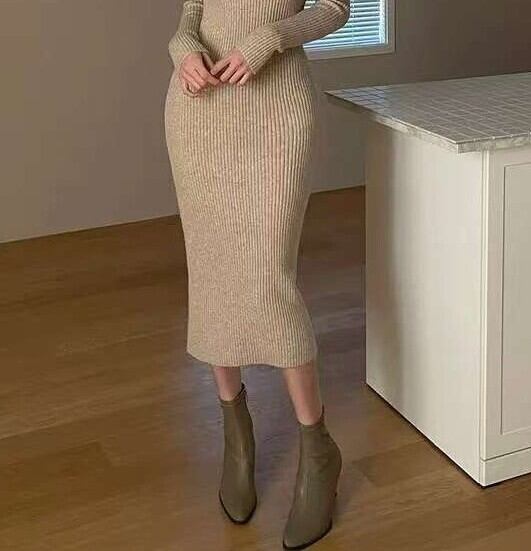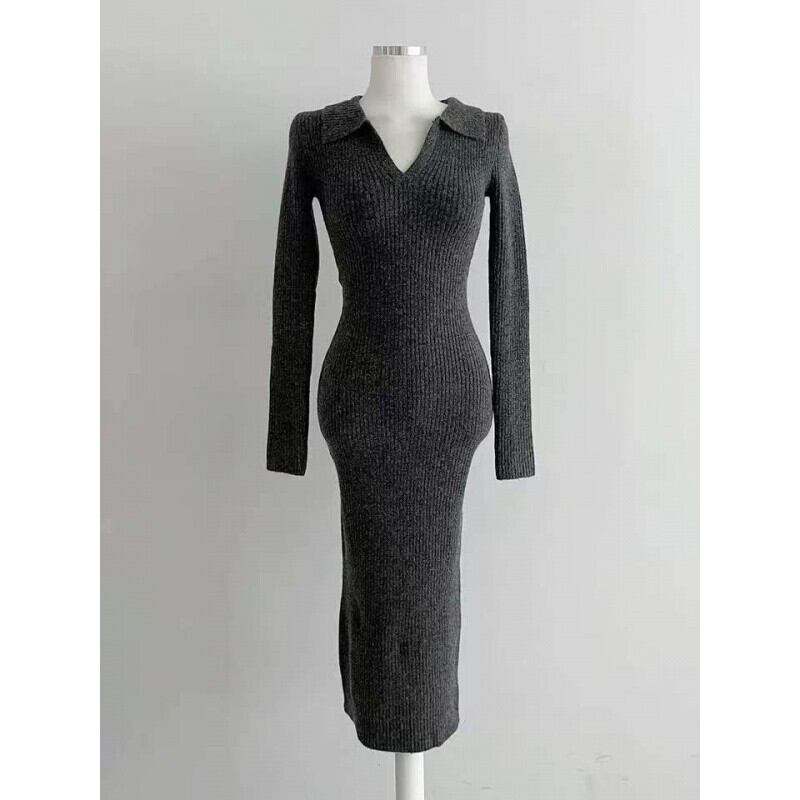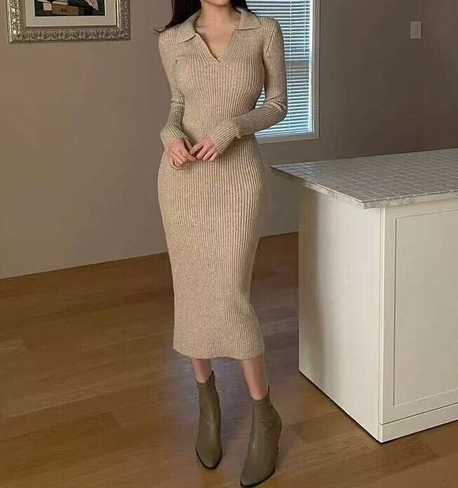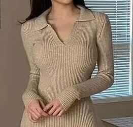 Polo collar elegant slim fit knit dress