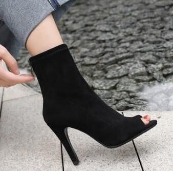 Open toe elegant suede short boots