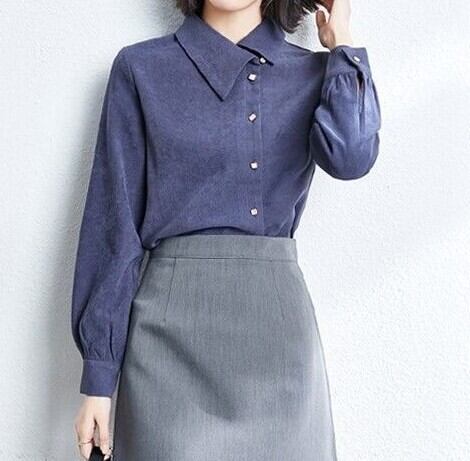 着用するだけで大人可愛い雰囲気が漂うアシンメトリックカラーエレガントベルベットブラウス 。