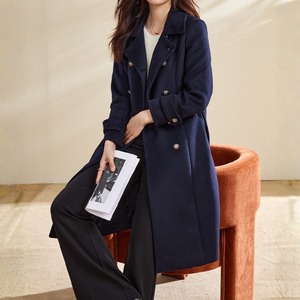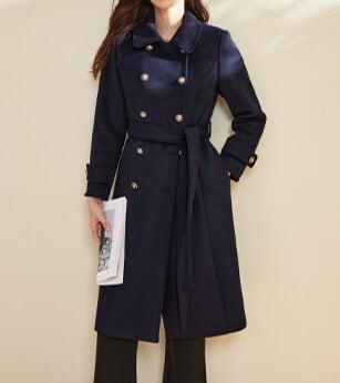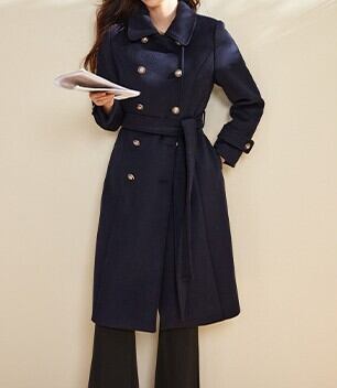 羽織るだけでエレガントでフェミニンな雰囲気が漂うスクエアカラーエレガントダブルブレストストラップスリムコート。