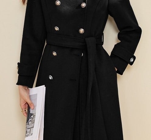 Square collar elegant double breast strap slim coat