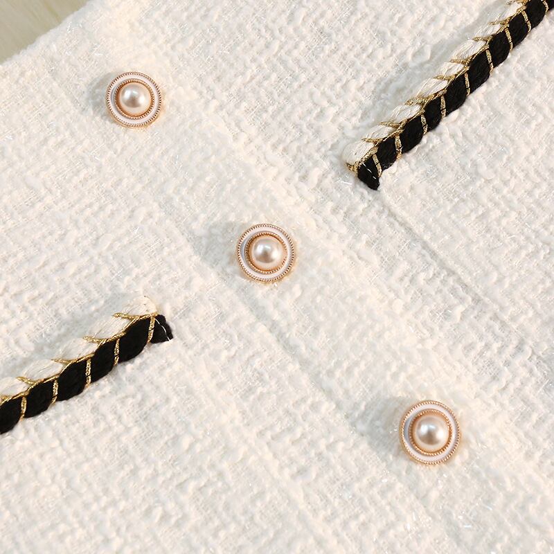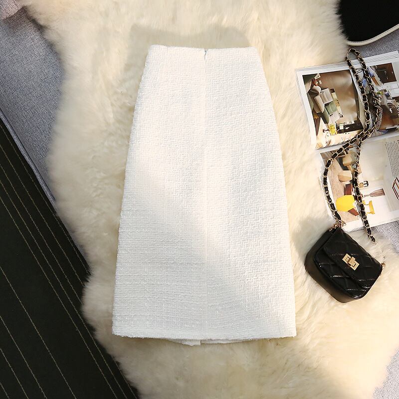 着用するだけでフェミニンな雰囲気が漂うハイウエストエレガントシングルブレストミドルツイードスカート。