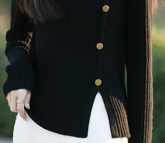 High neck elegant breast design hem slit knit ( 4color )