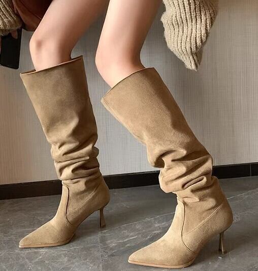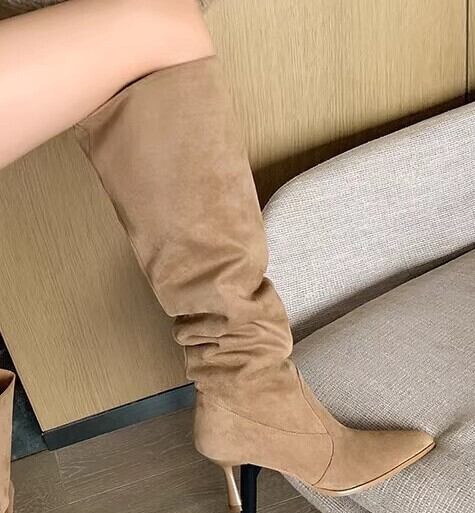 Pointed toe elegant stiletto heel long suede boots ( 2color )