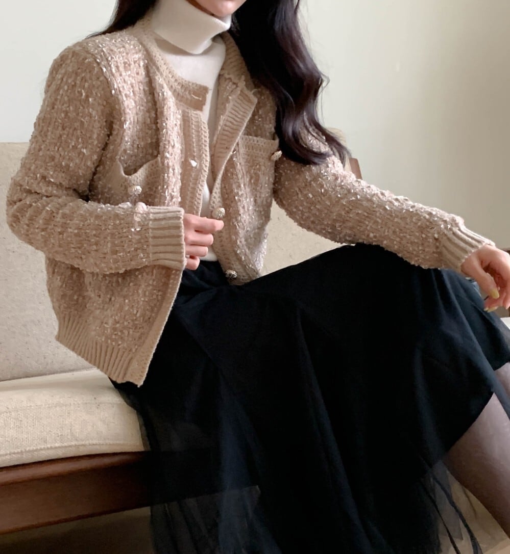Single breast elegant crochet retro knit cardigan ( 4color )