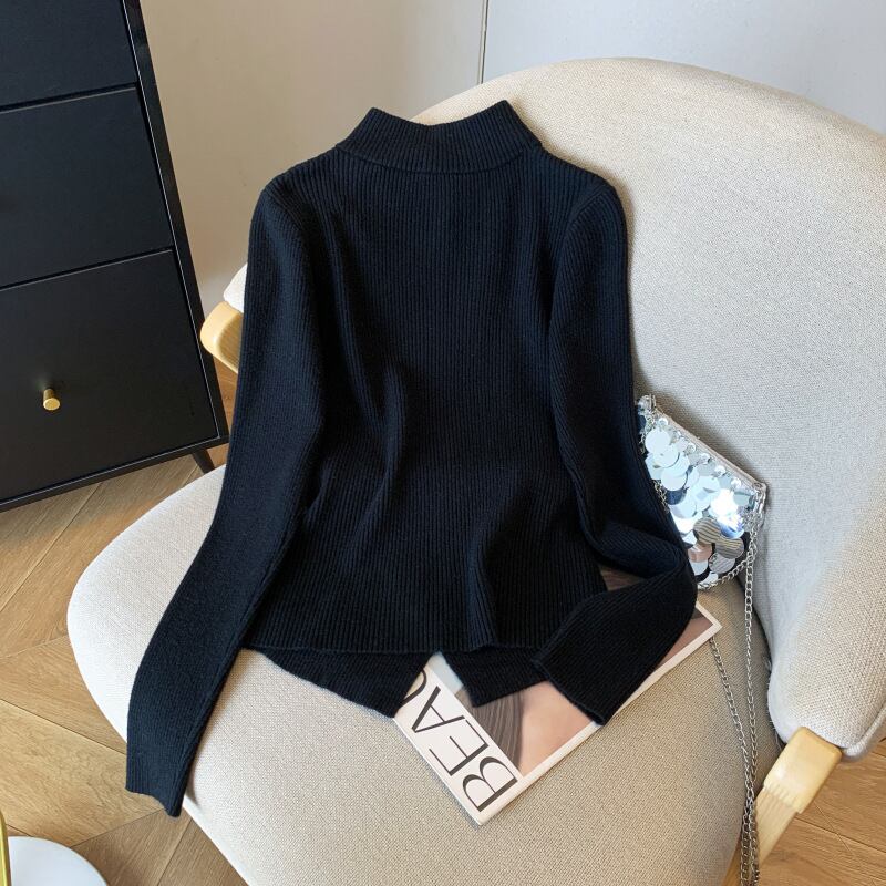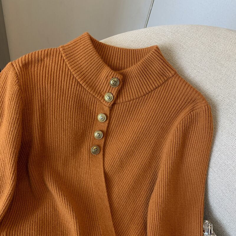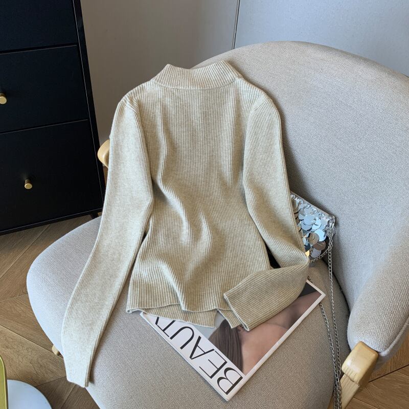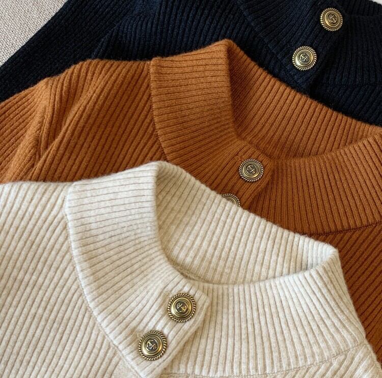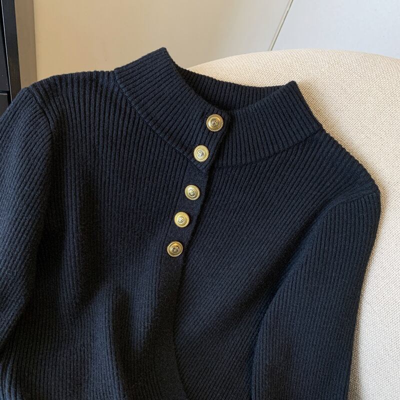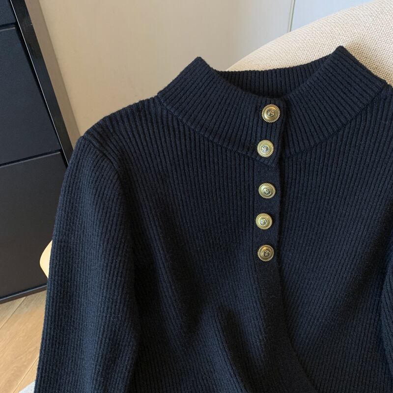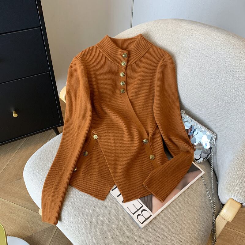 着用するだけでフェミニンな雰囲気が漂うシングルブレストエレガントヘムクロスニット。