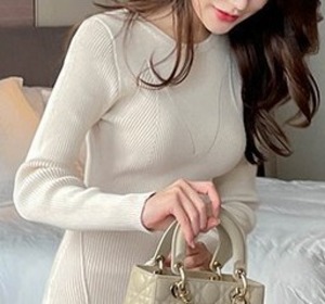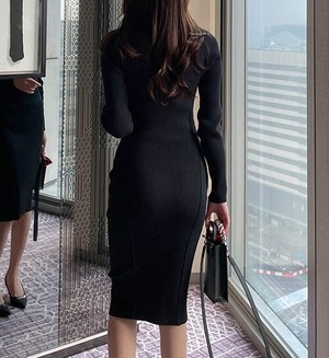 着用するだけでフェミニンな雰囲気が漂うラウンドネックエレガントスリムフィットミドルニットドレス。