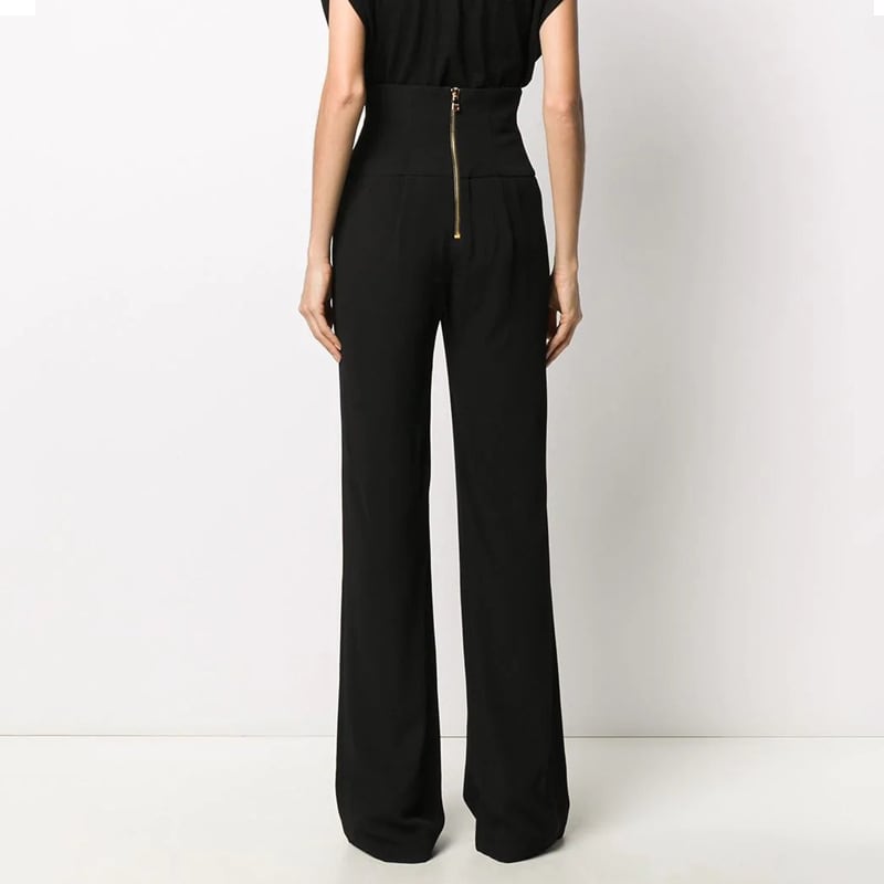 High waist elegant double breast flare pants