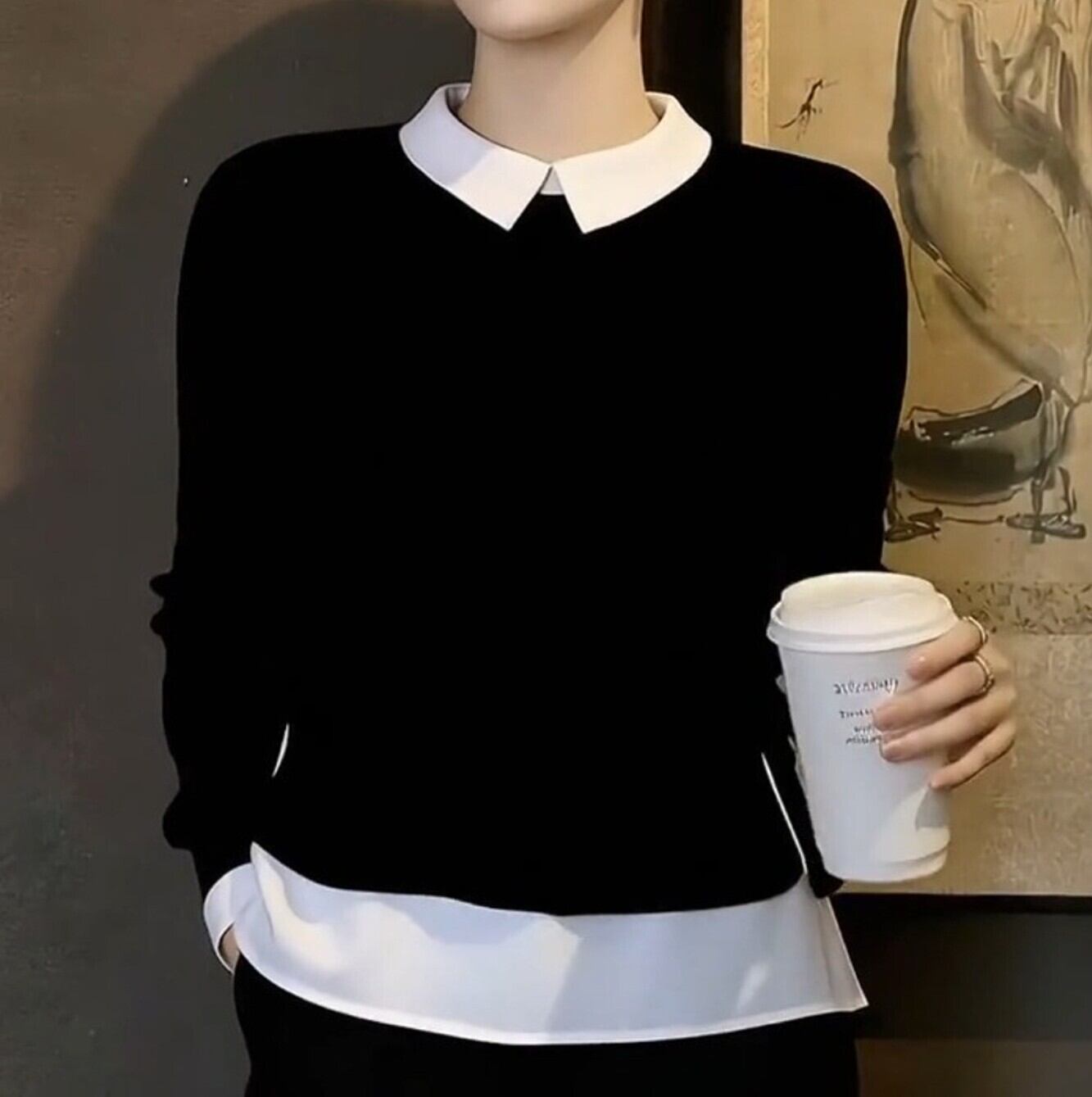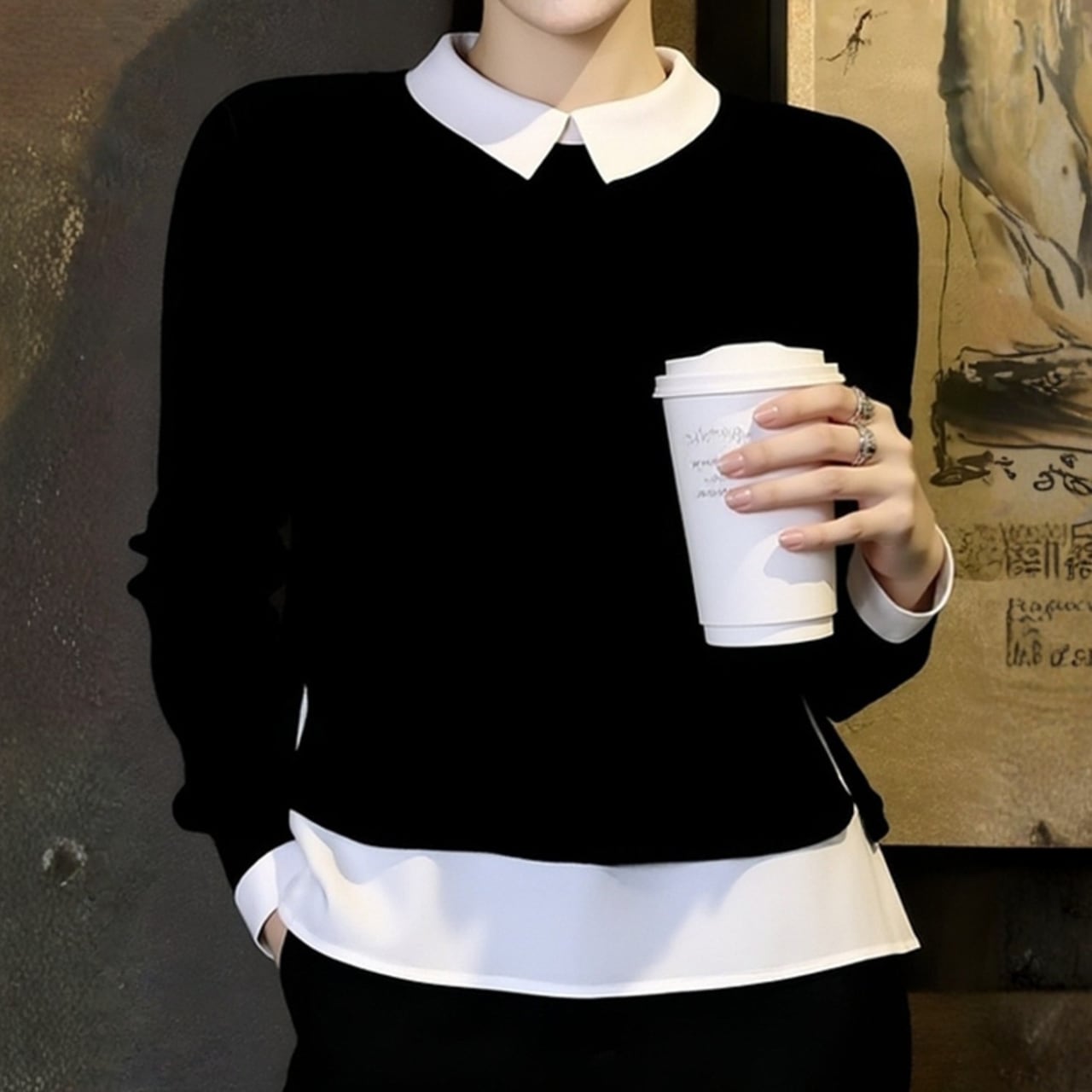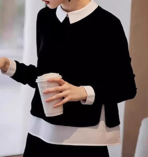 着用するだけでフェミニンな雰囲気が漂うポロカラーエレガントツーピースベルベットシャツ。