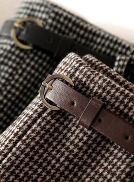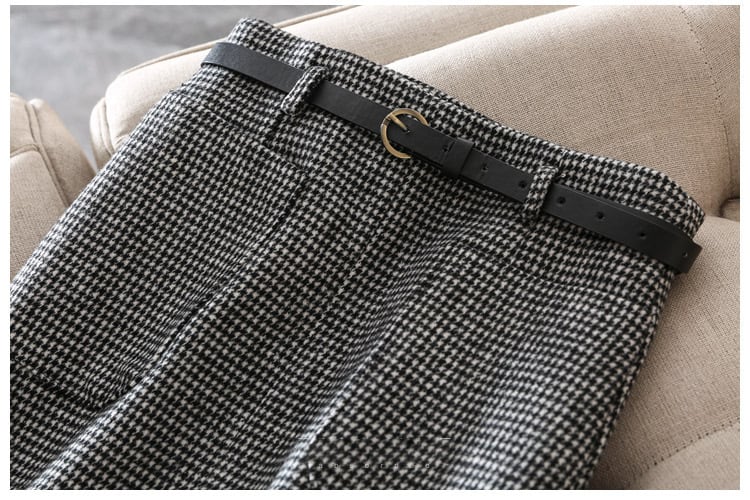 High waist elegant front slit houndstooth middle skirt ( 2color )