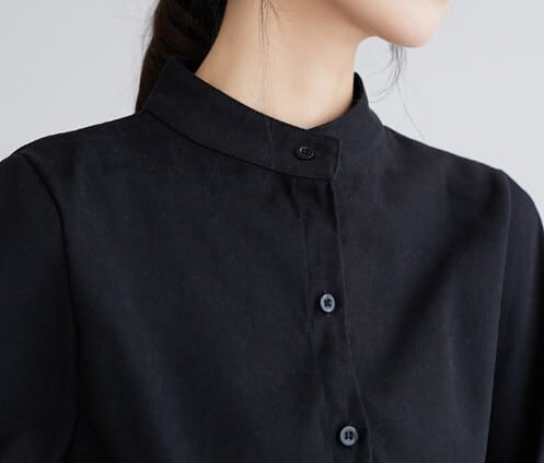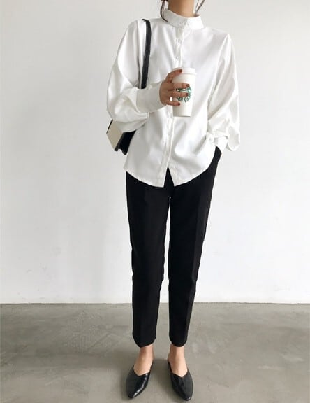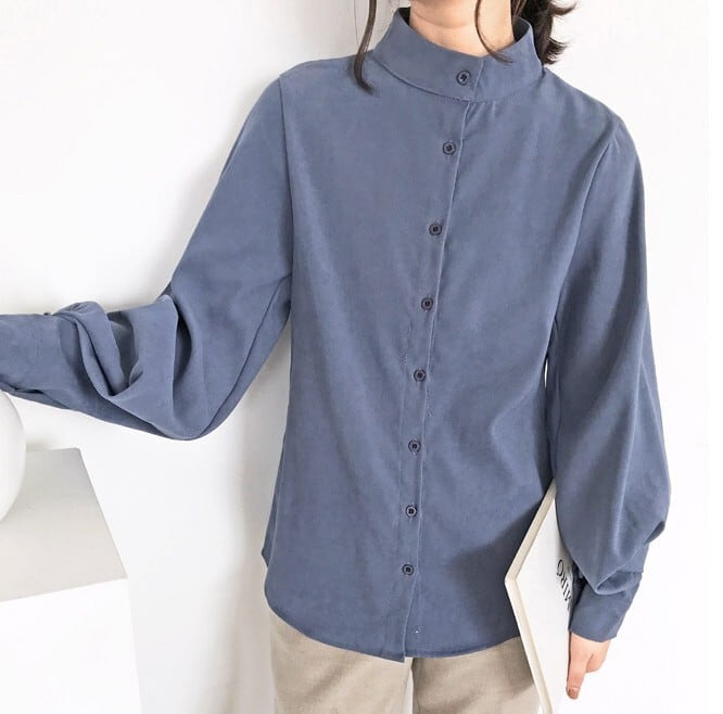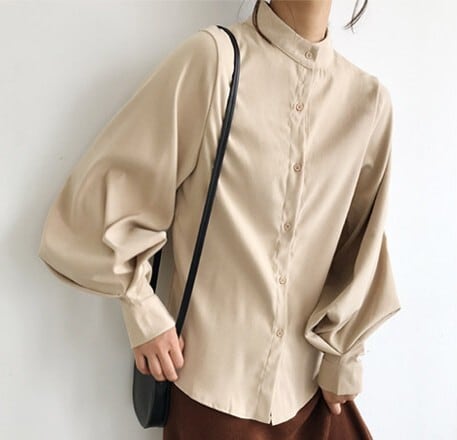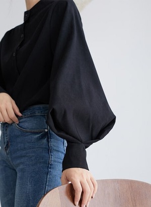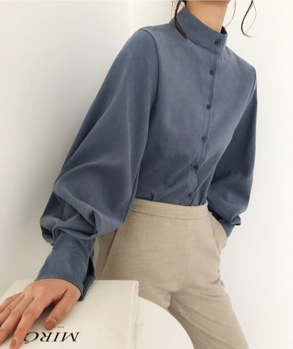 Stand collar elegant lantern sleeve blouse ( 4color )