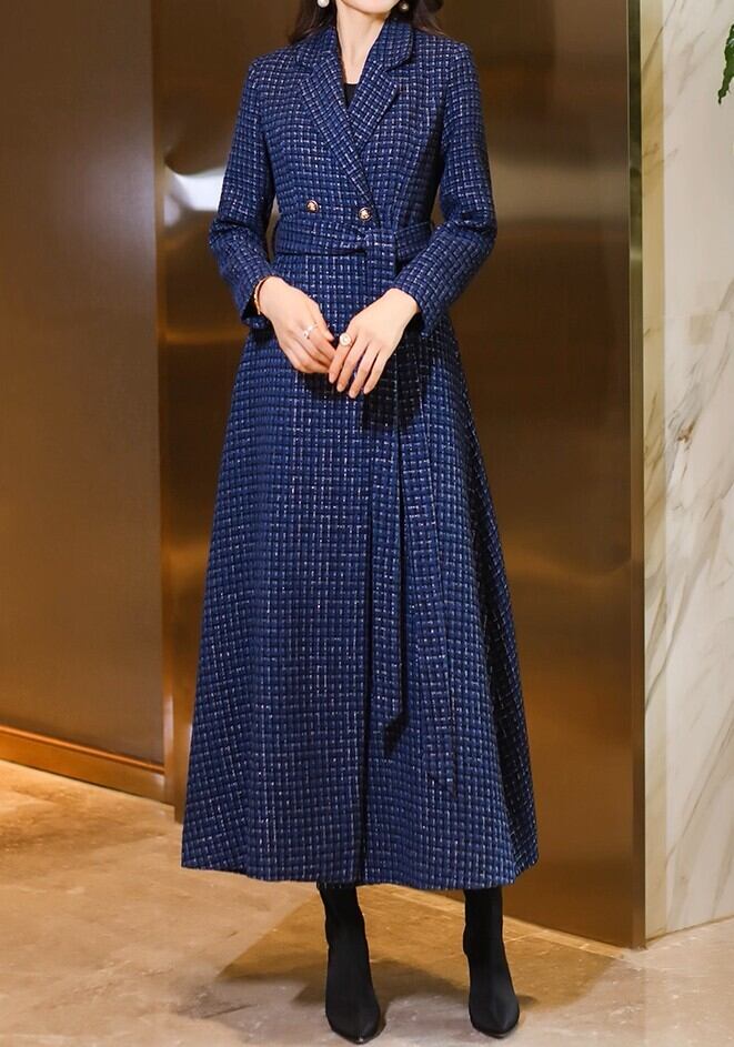 Suit collar elegant double breast tweed long coat