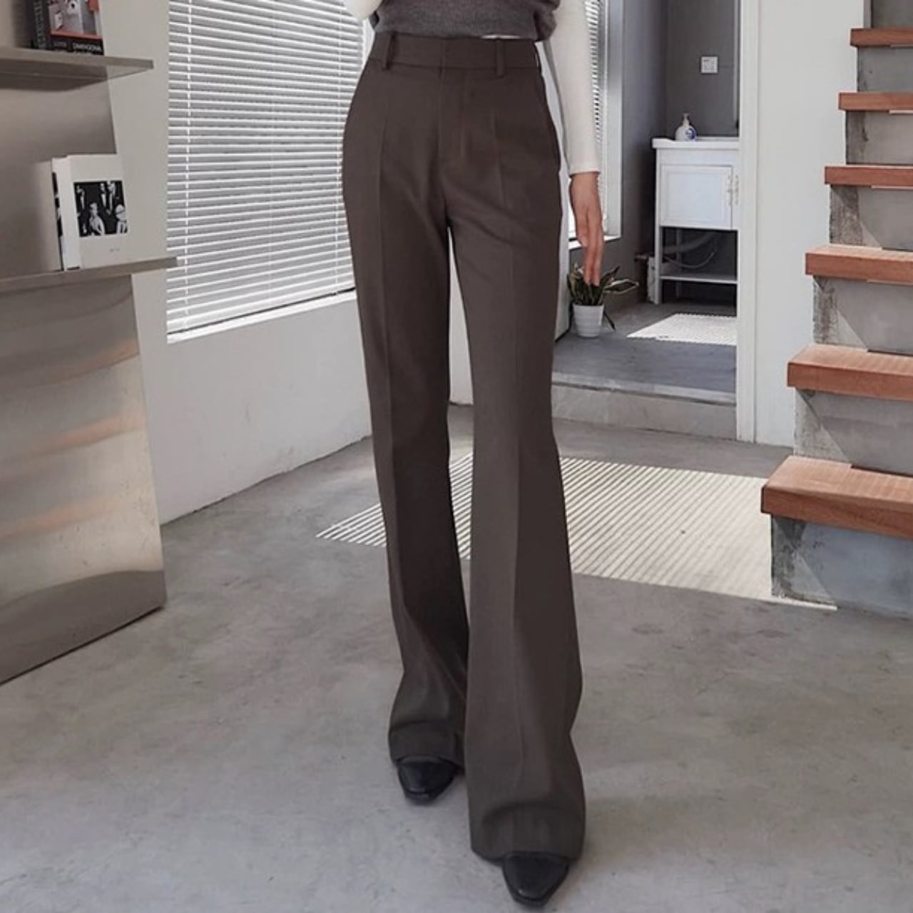 着用するだけでフェミニンな雰囲気が漂うハイウエストエレガントロングフレアパンツ。