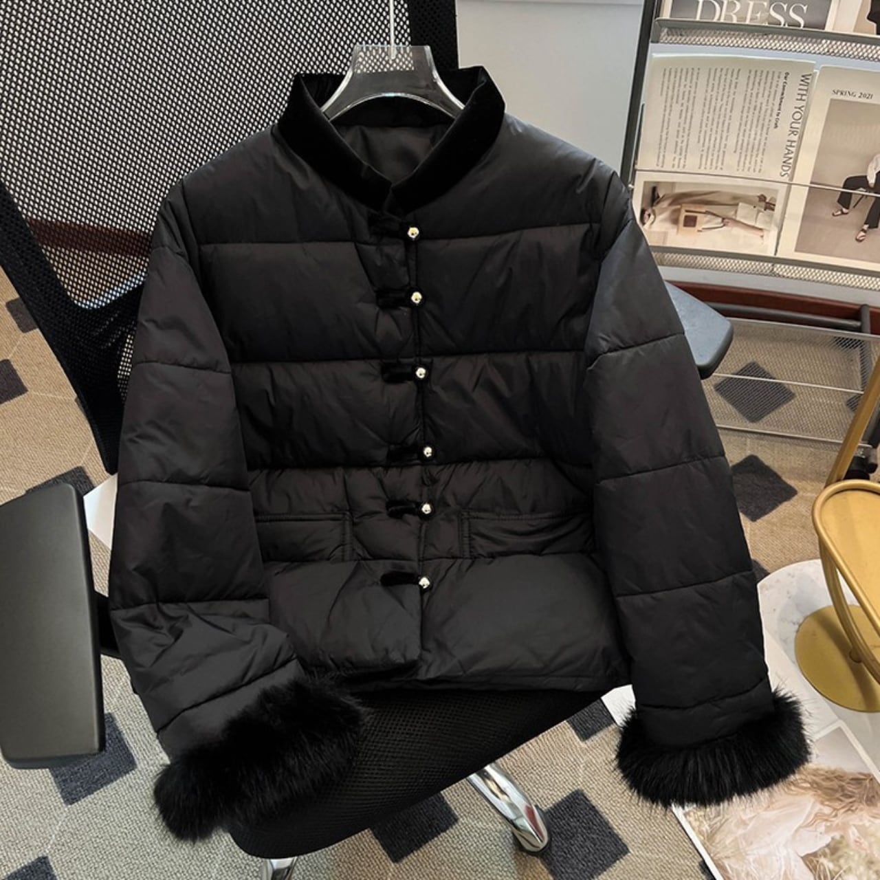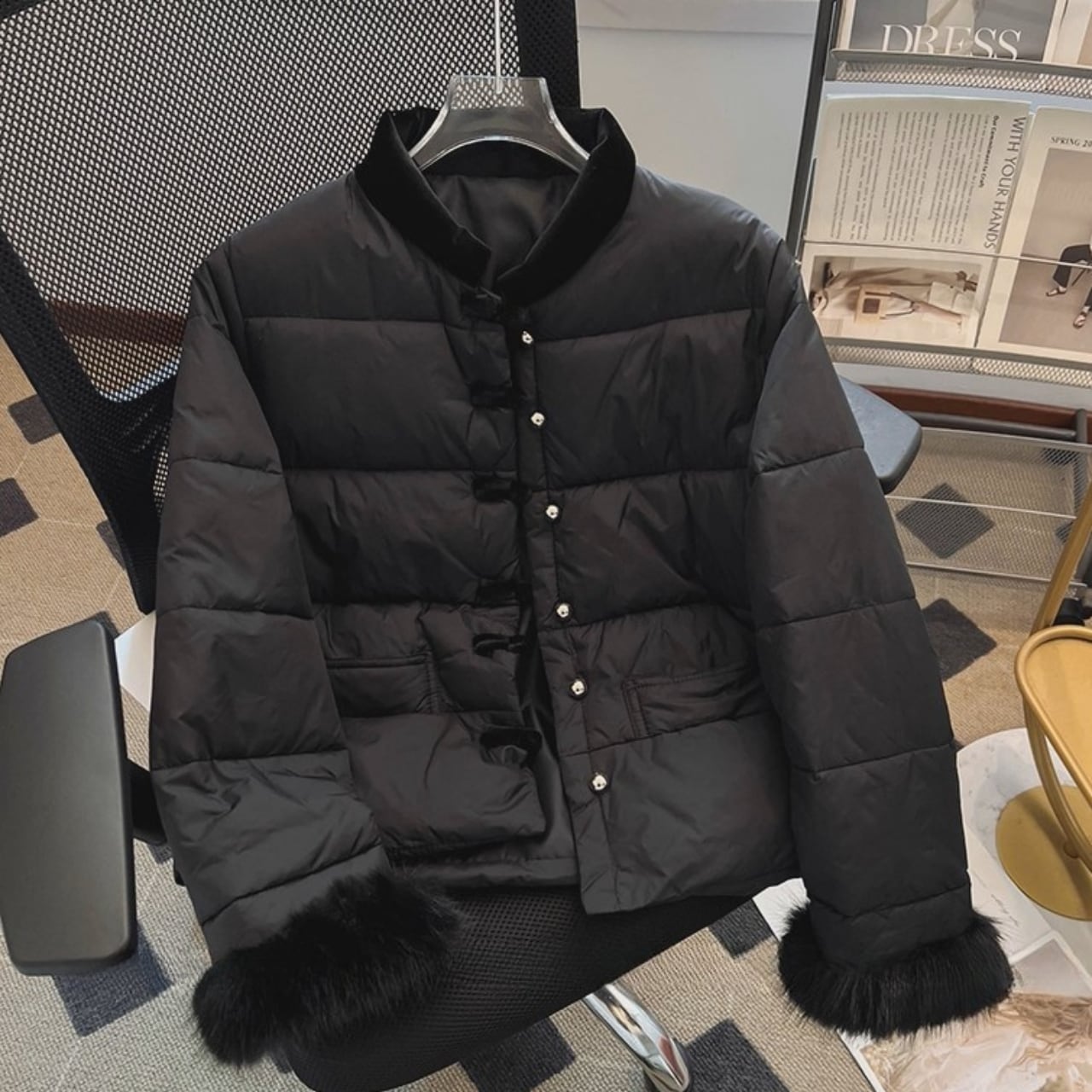 着用するだけでエレガントでフェミニンな雰囲気が漂うスタンドカラーエレガントシングルブレストファースリーブジャケット。