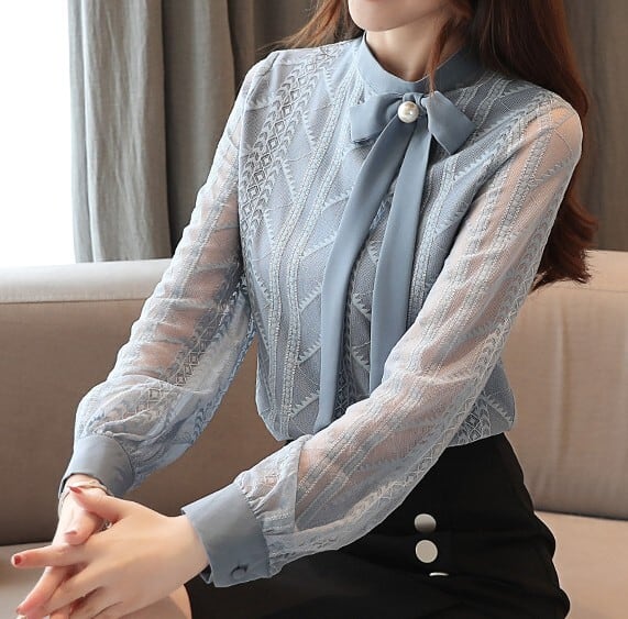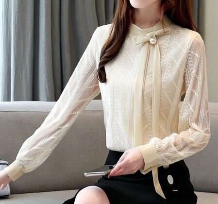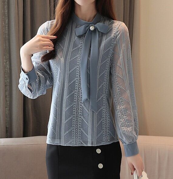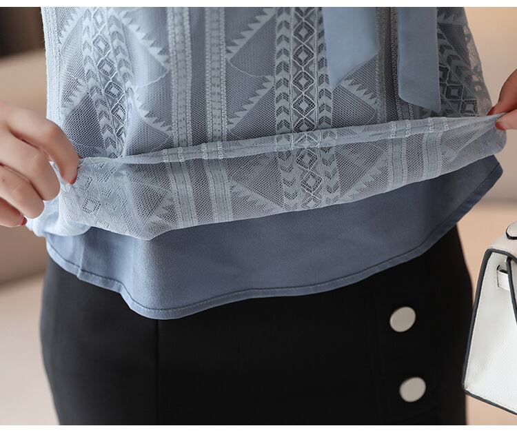 Chest tie elegant sleeve mesh chiffon shirt