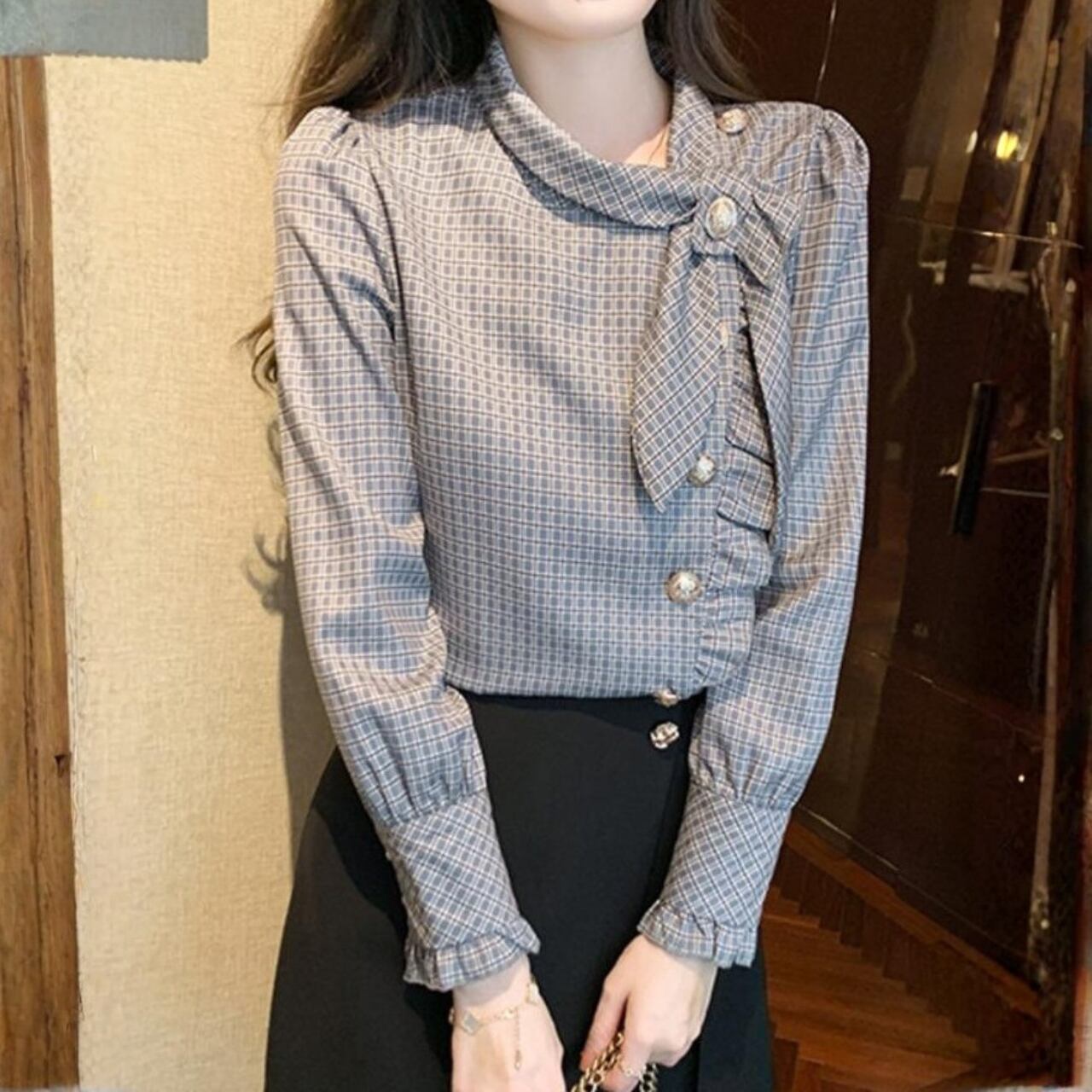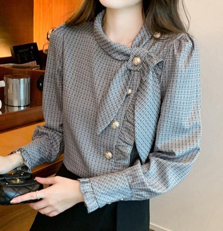 着用するだけで大人可愛い雰囲気が漂うチェストタイエレガントアシンメトリックシフォンブラウス。