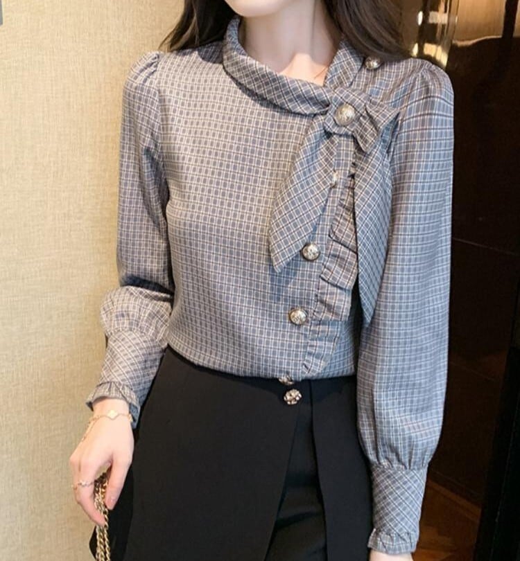 Chest tie elegant asymmetric chiffon blouse