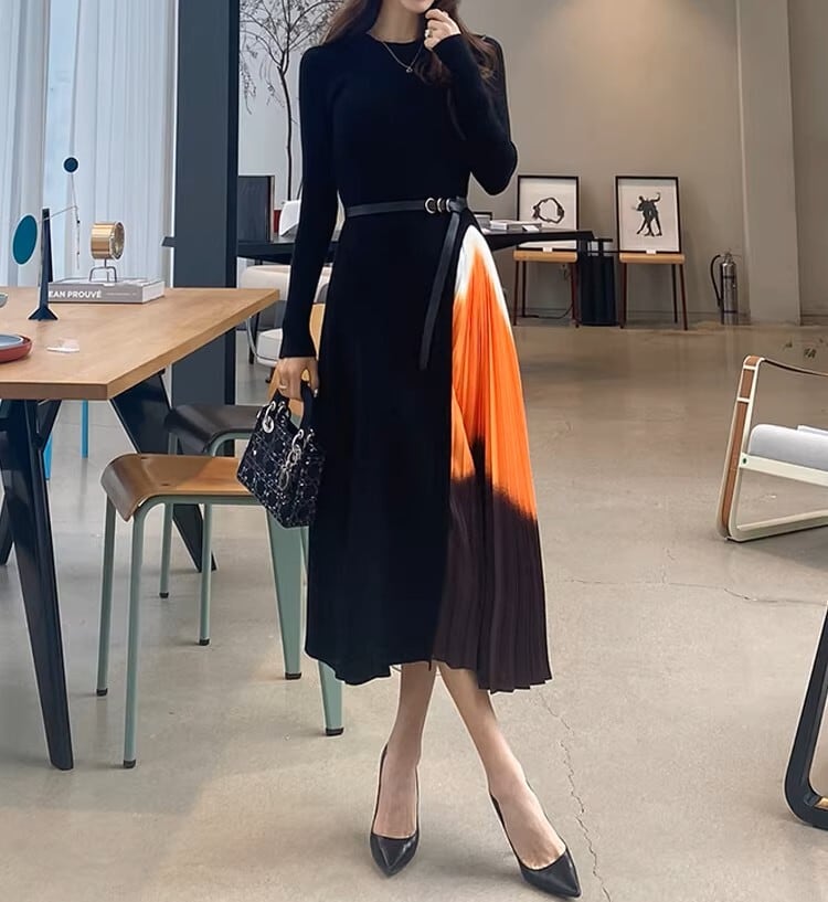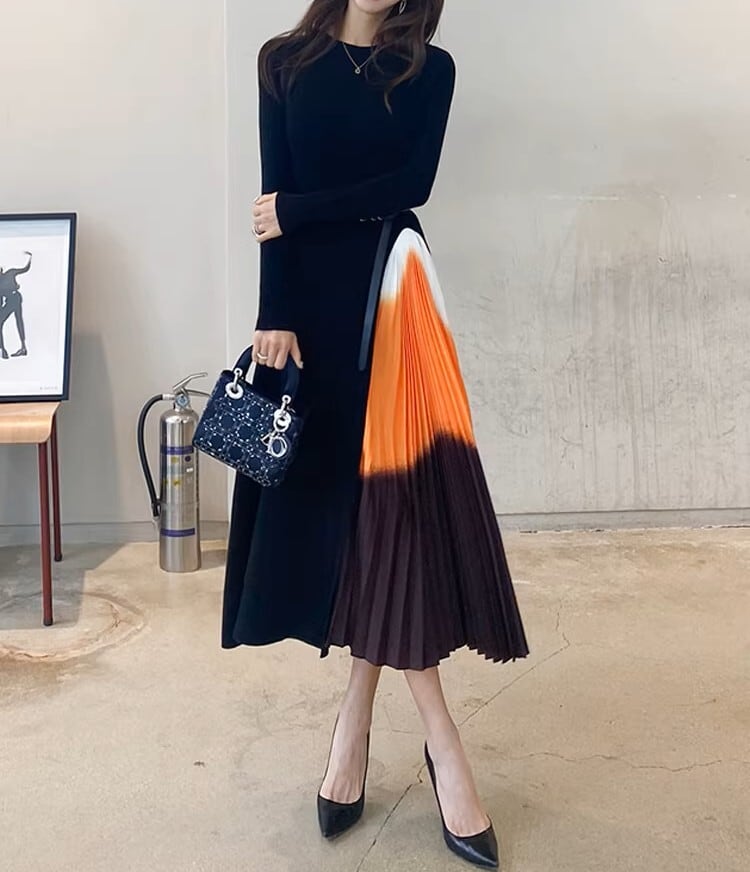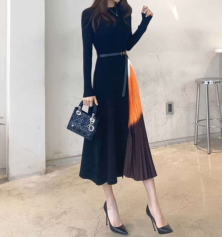 着用するだけでフェミニンな雰囲気が漂うプリーツステッチエレガントストラップロングニットドレス。