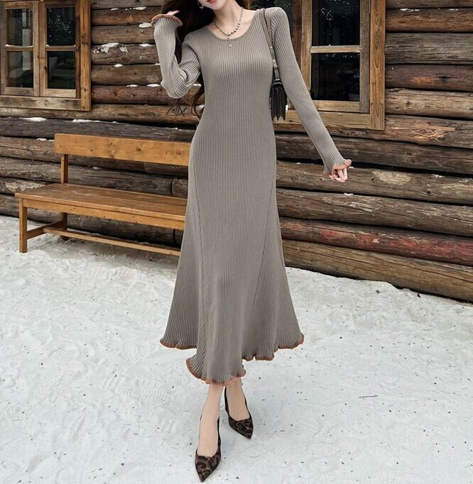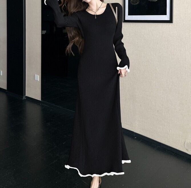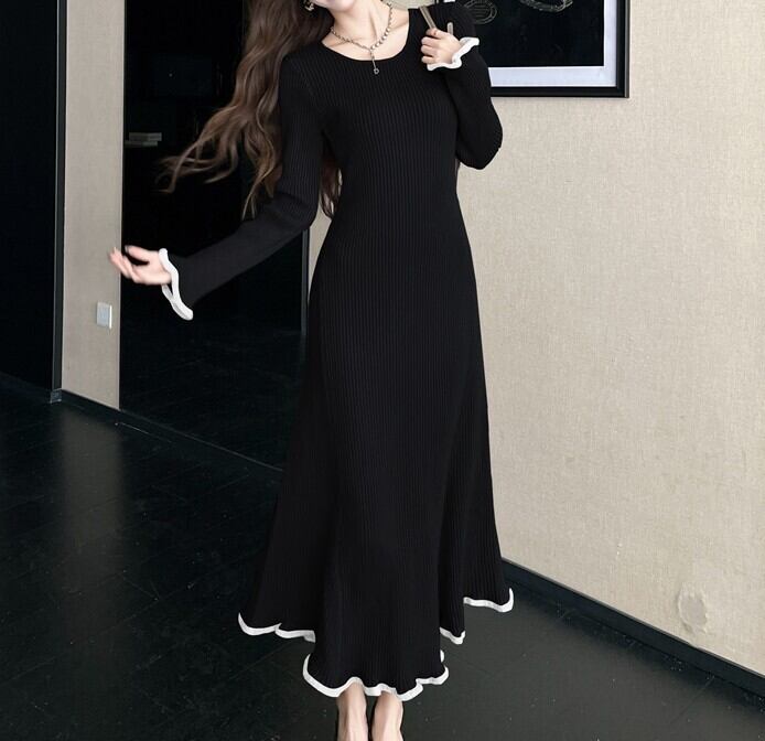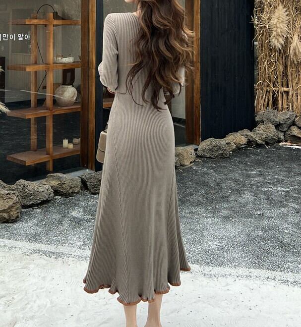 Flare sleeve elegant slim fit swing knit dress ( 2color )