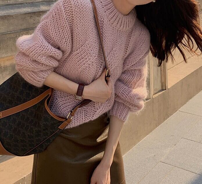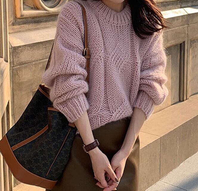 着用するだけで大人可愛い雰囲気が漂うラウンドネックエレガントフラッフィーベルベットケーブルニット。