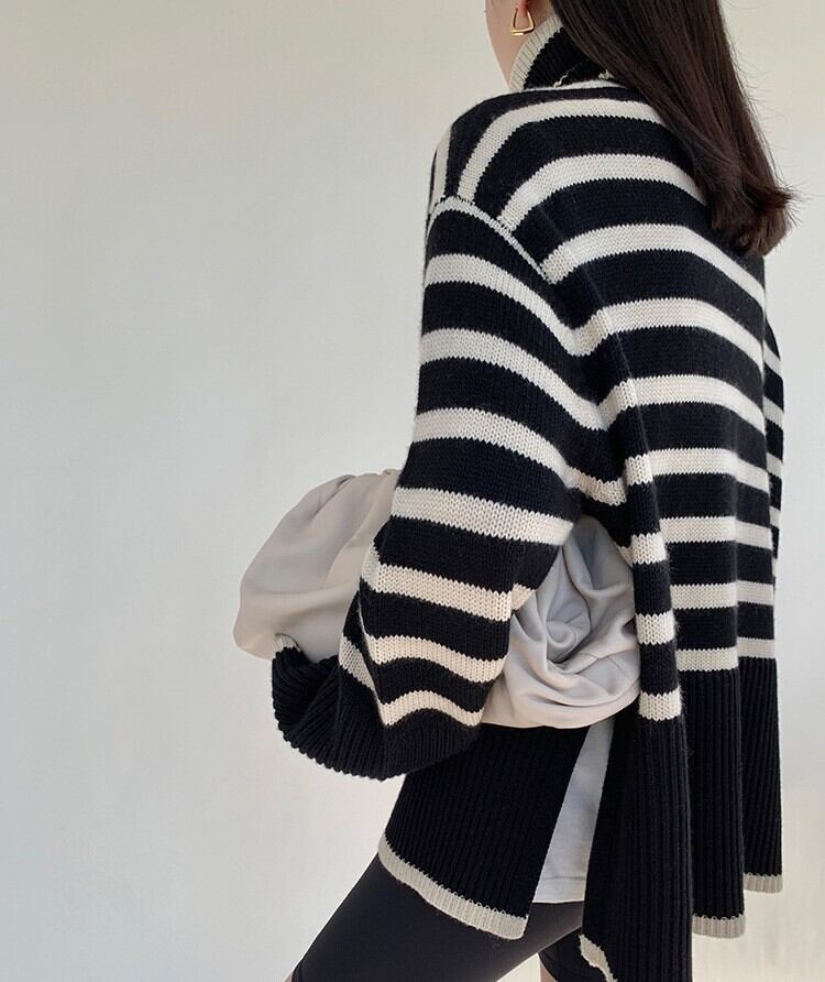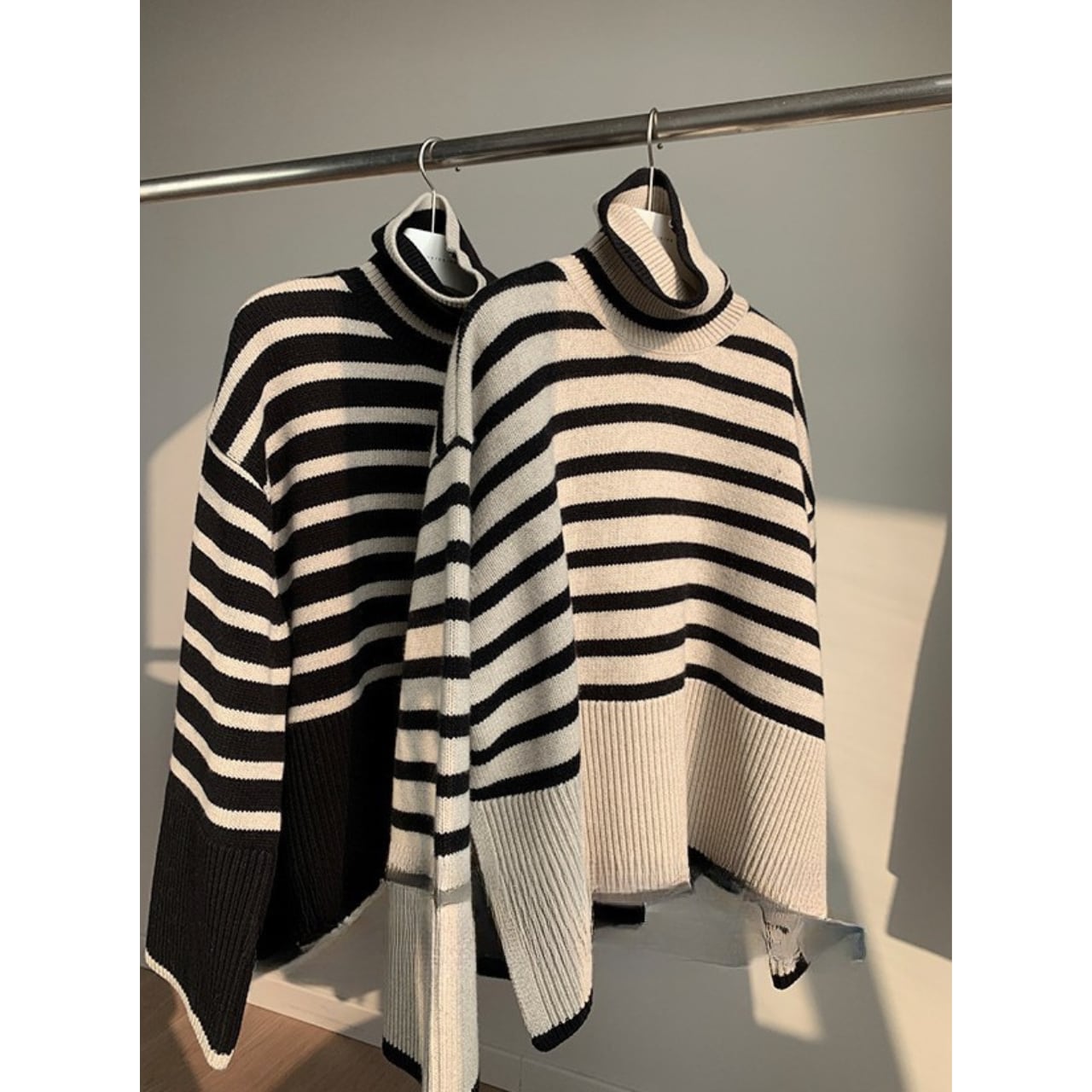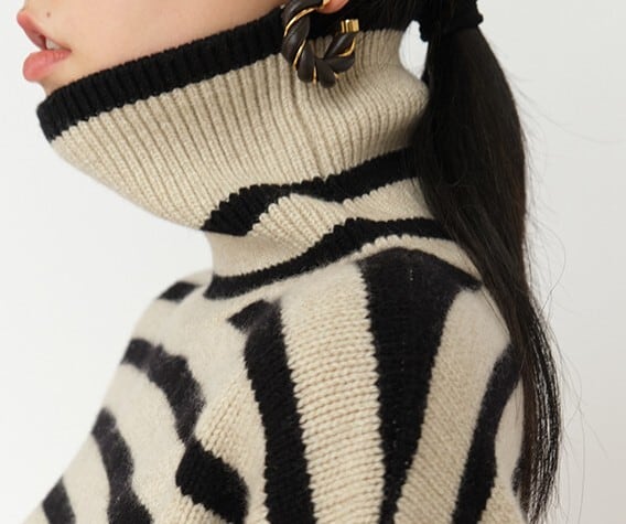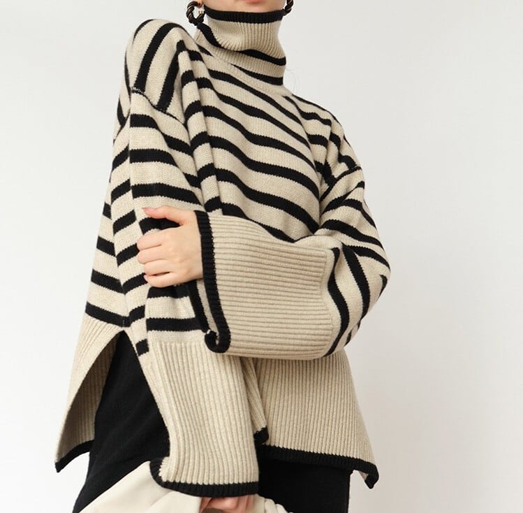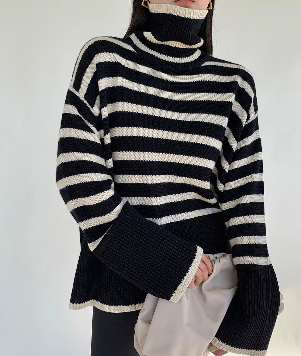 着用するだけで大人可愛い雰囲気が漂うハイネックエレガントサイドスリットボーダーニット。