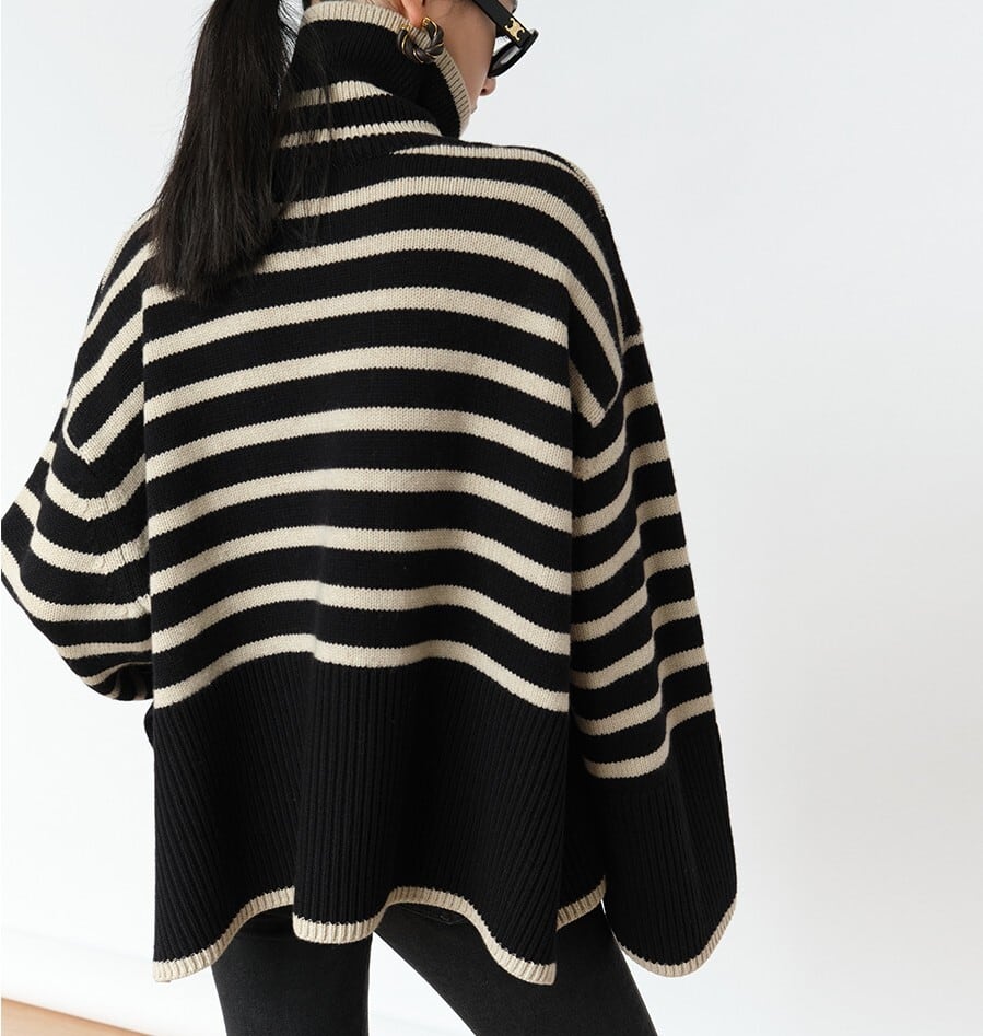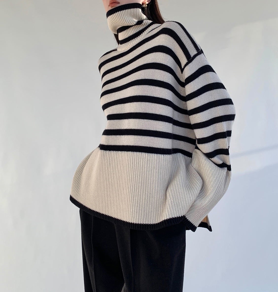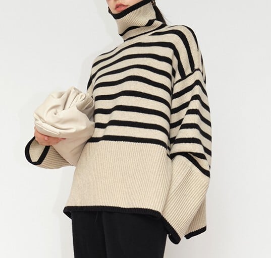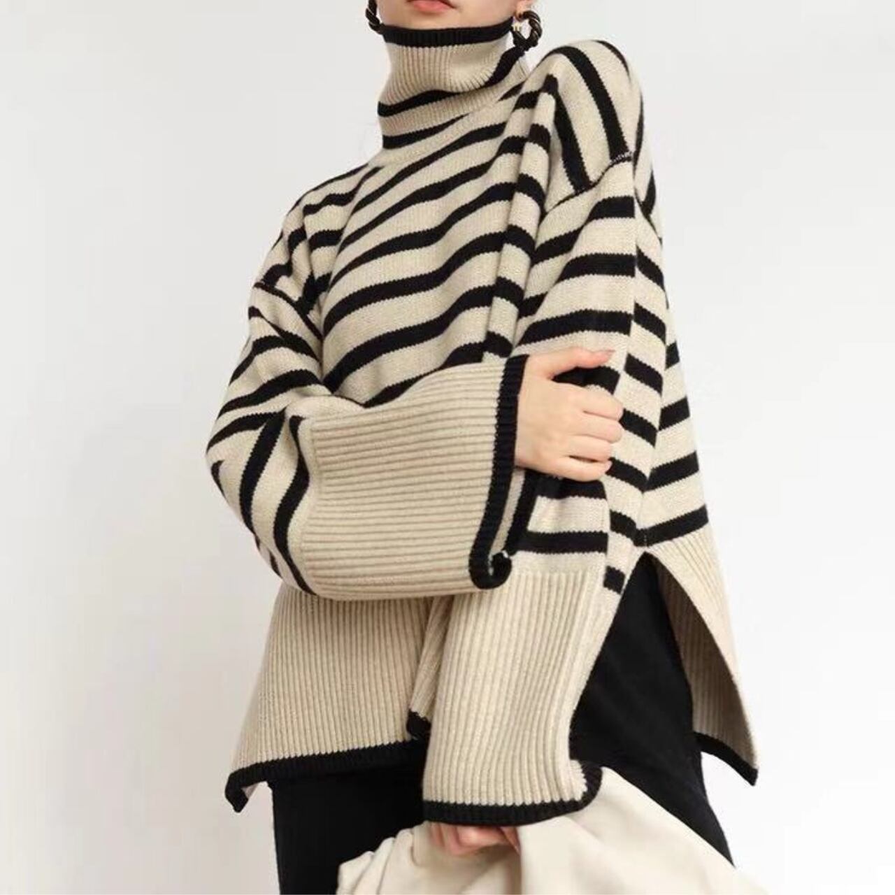 着用するだけで大人可愛い雰囲気が漂うハイネックエレガントサイドスリットボーダーニット。