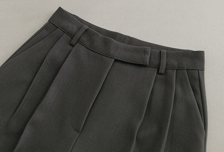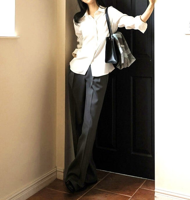 ハイウエスト、ワイドレッグデザインがスタイルを引き締めます。