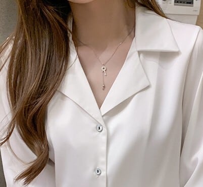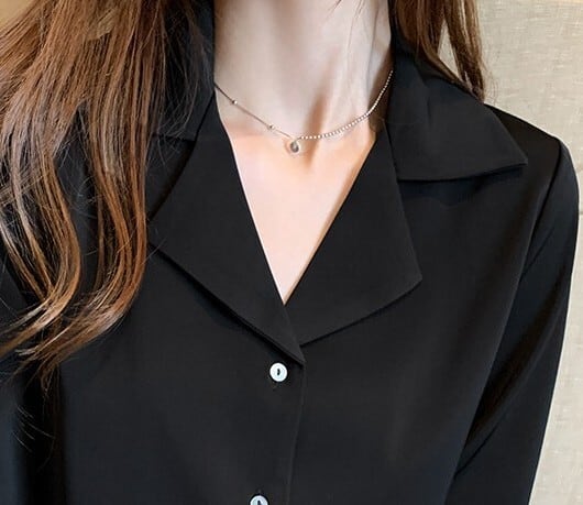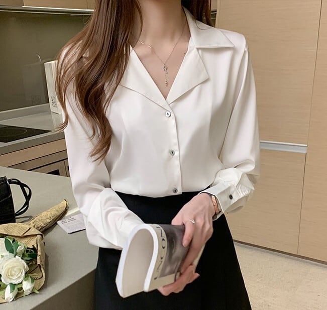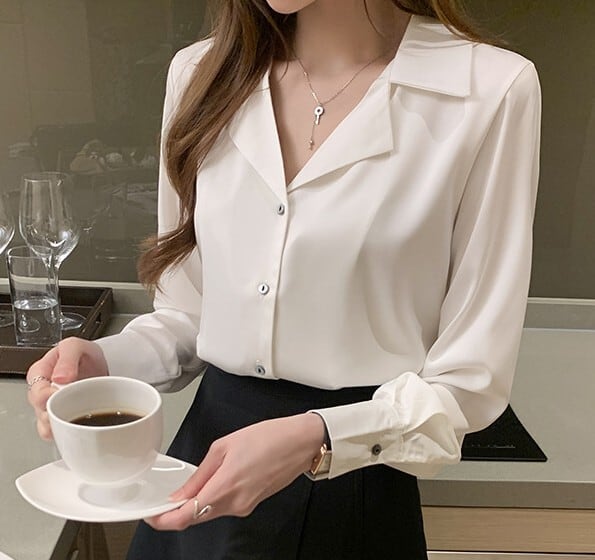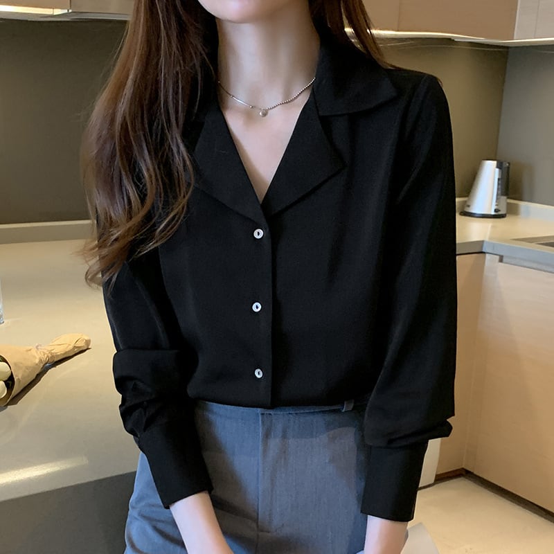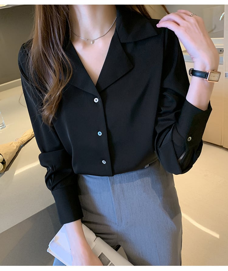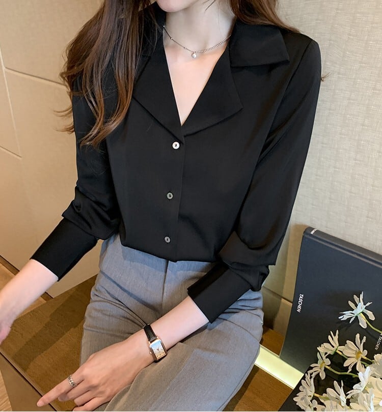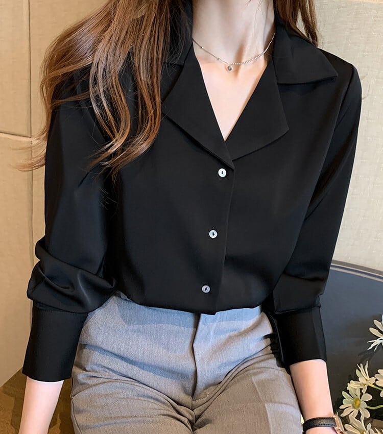 Open collar elegant slim satin blouse