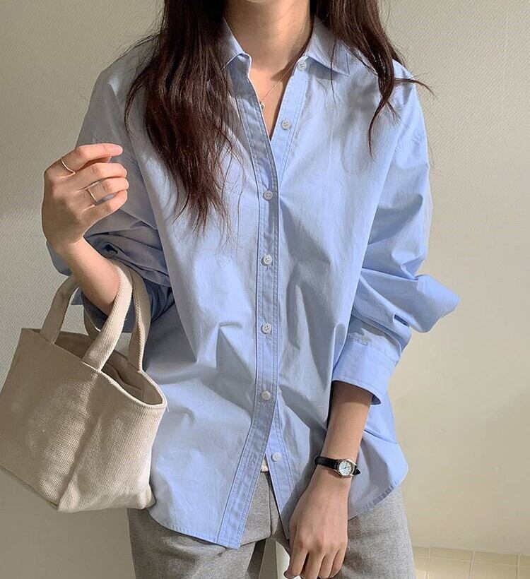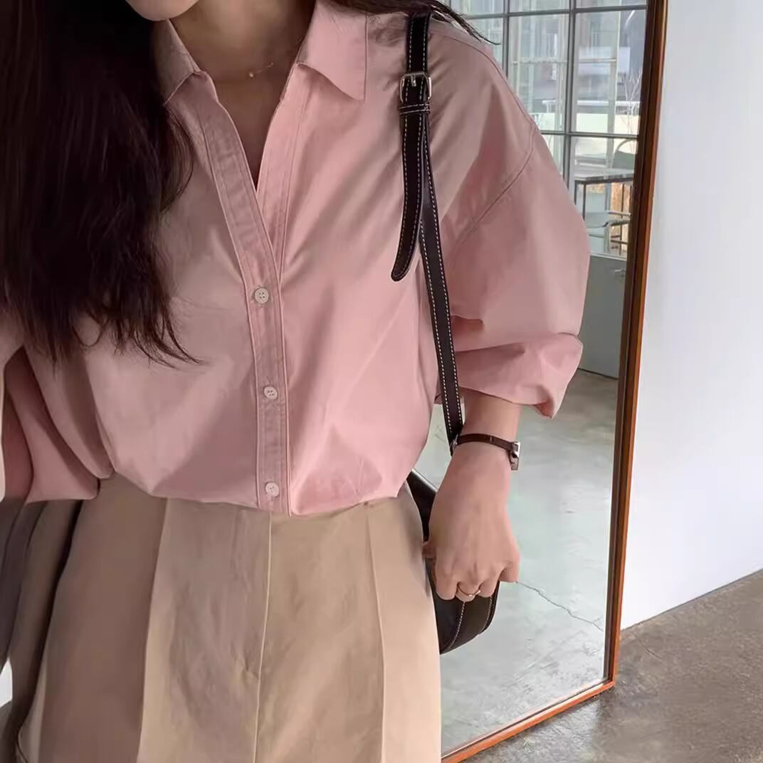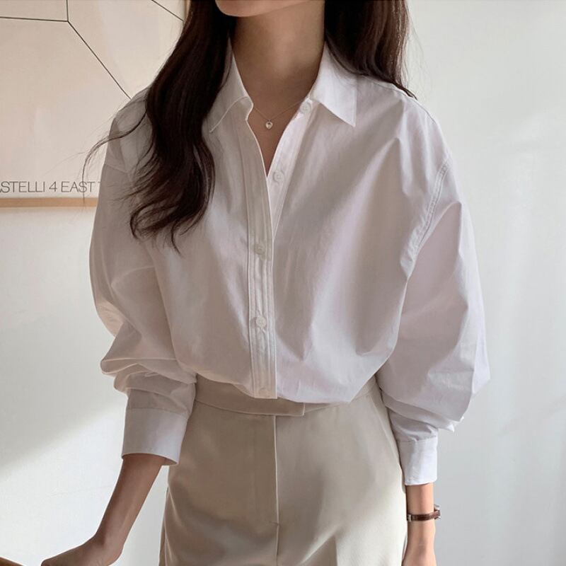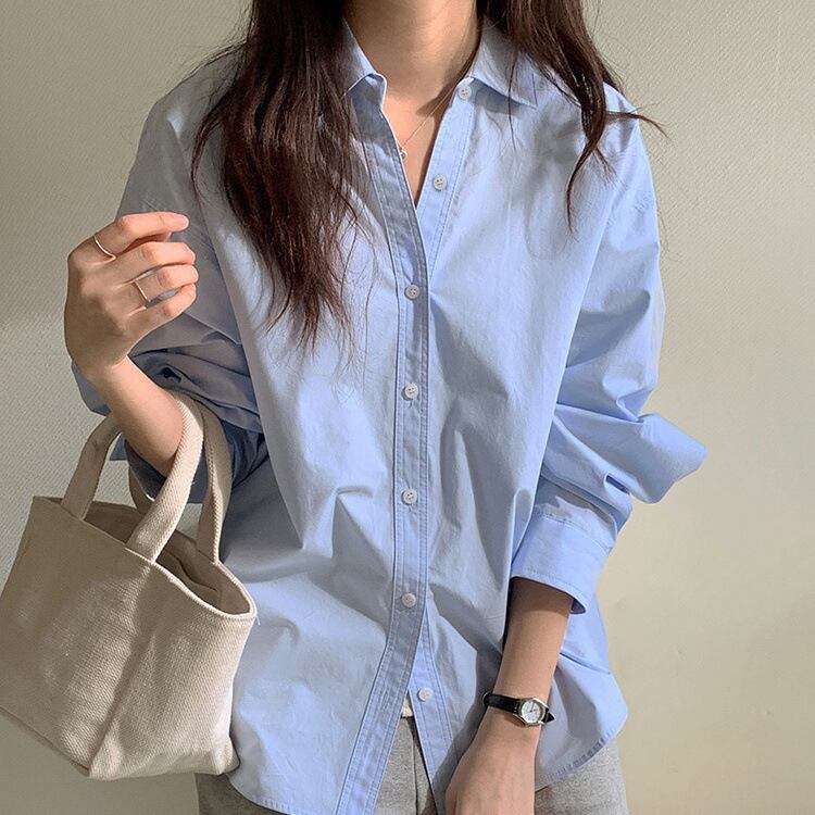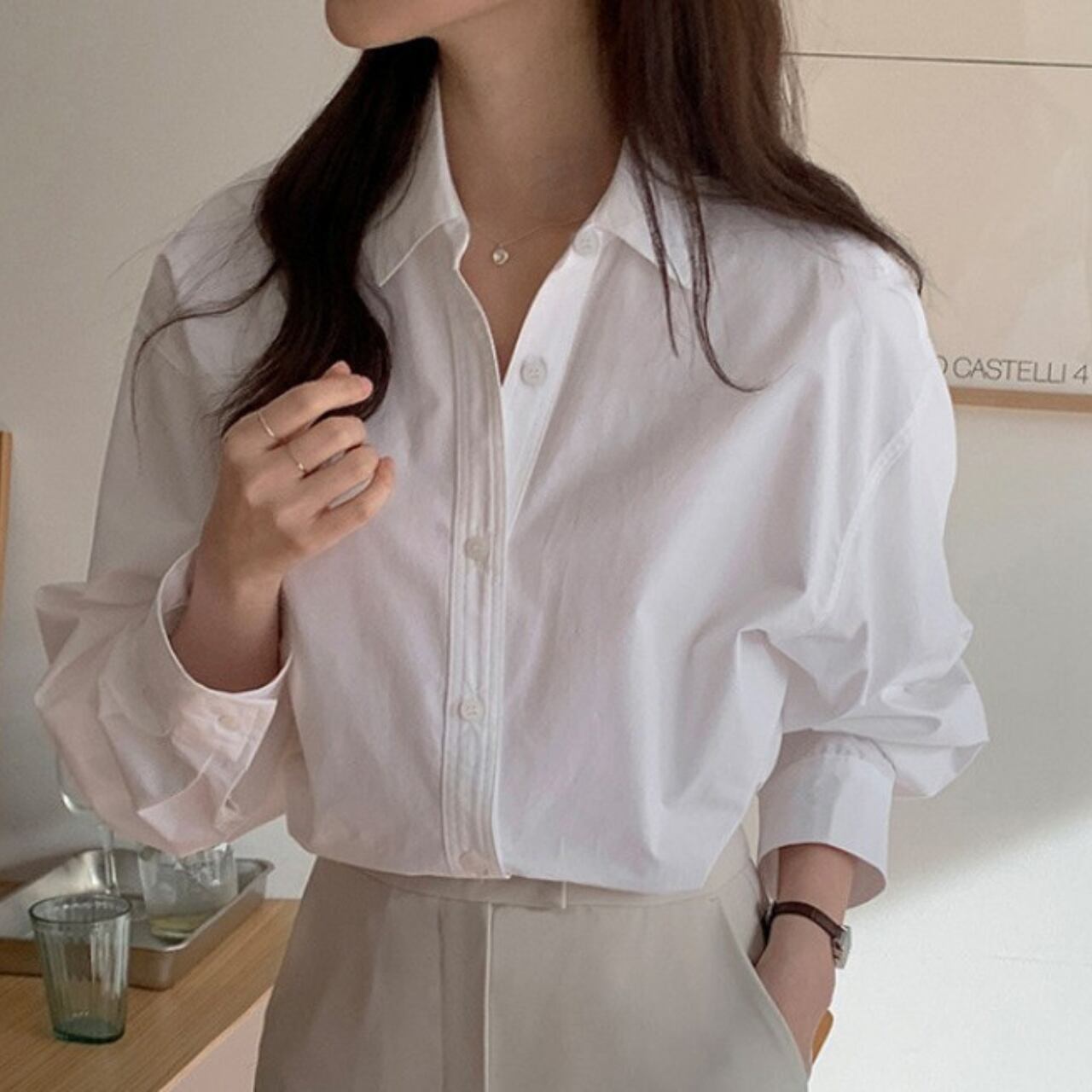 着用するだけでフェミニンな雰囲気が漂うポロカラーエレガントシングルブレストスリムブラウス。