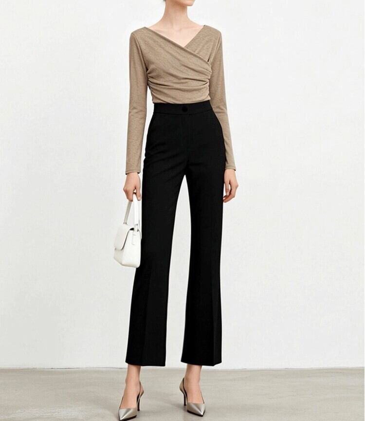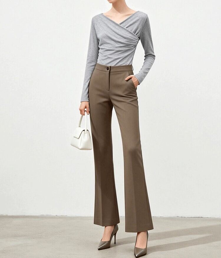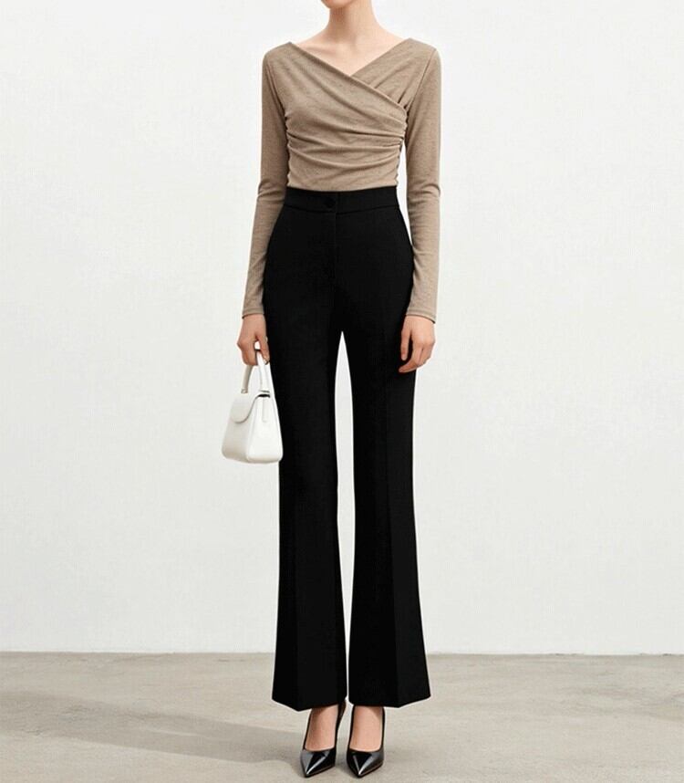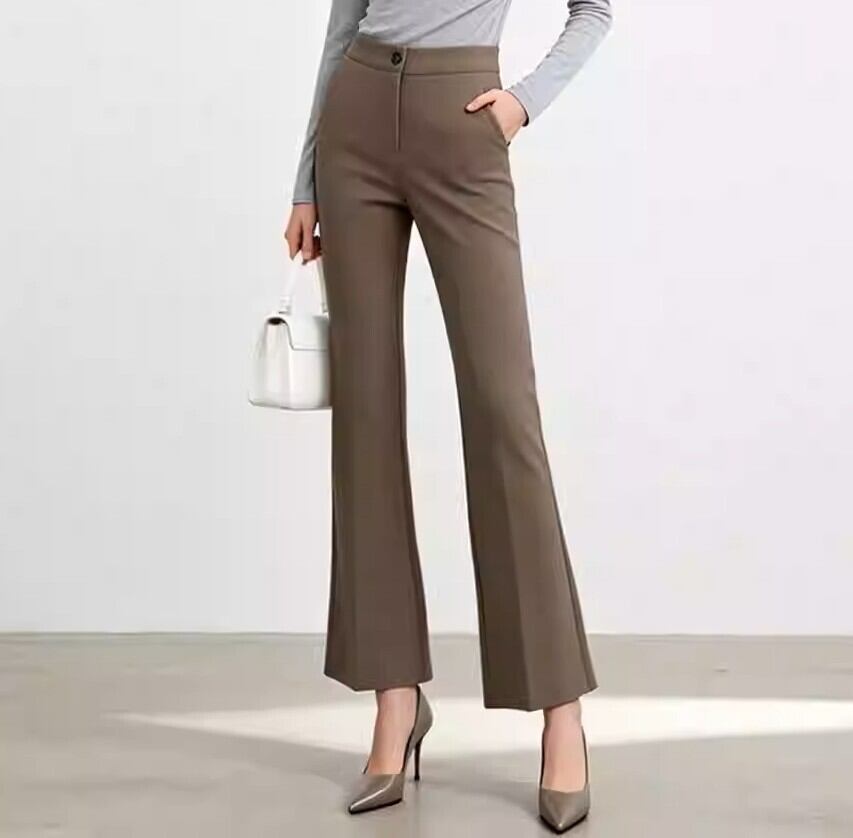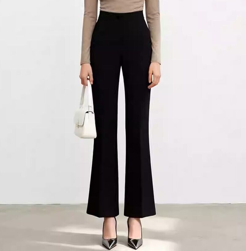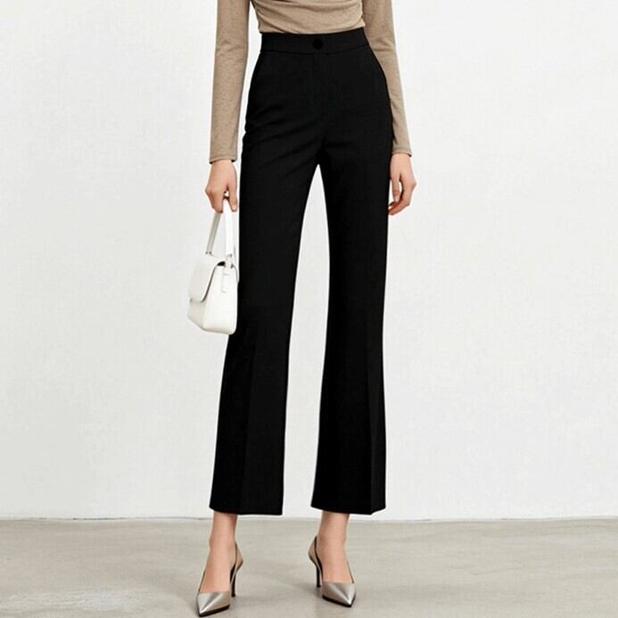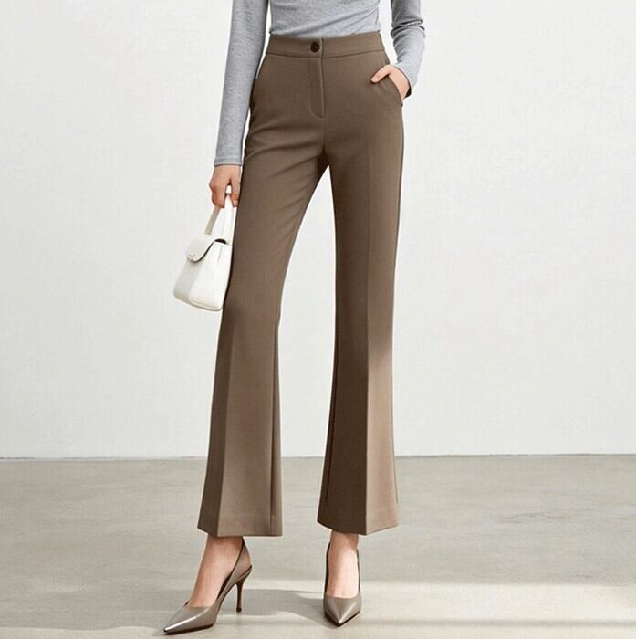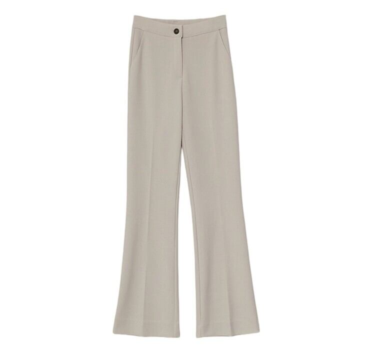 ハイウエストとスリムフレアデザインがスタイルを引き締めます。