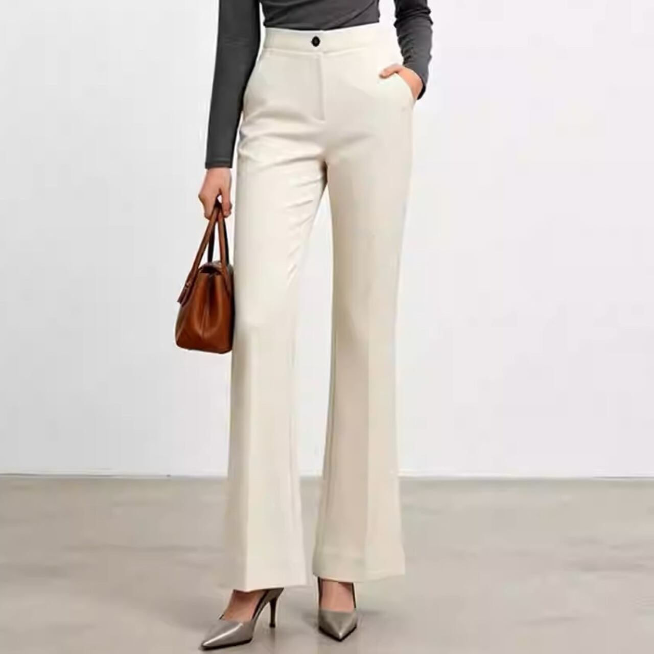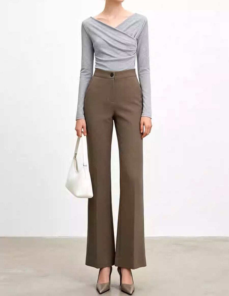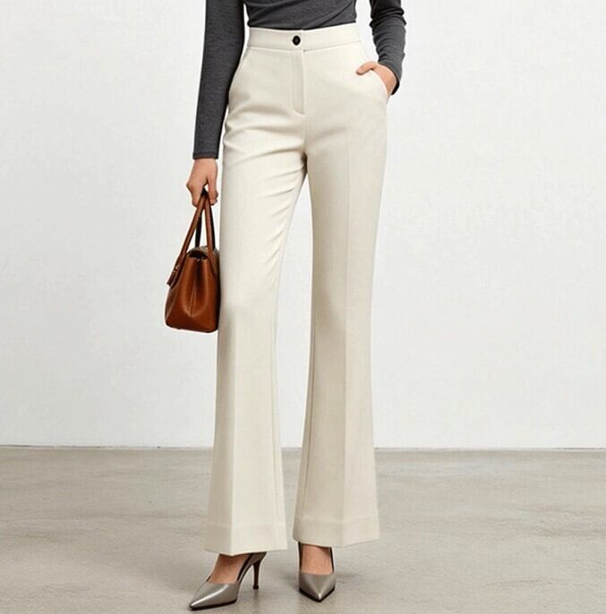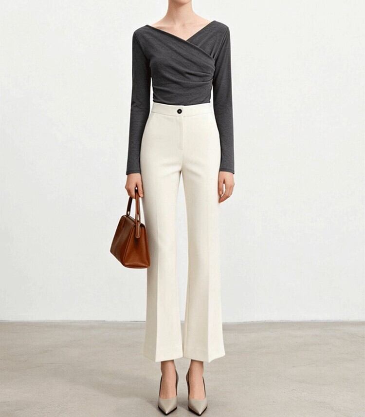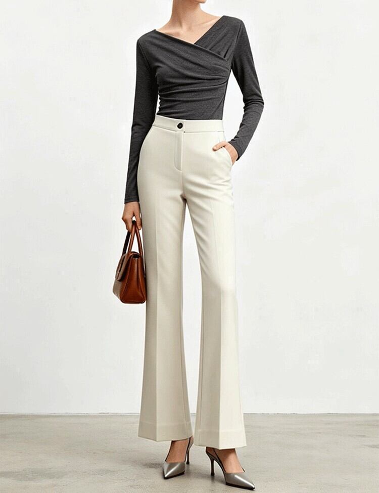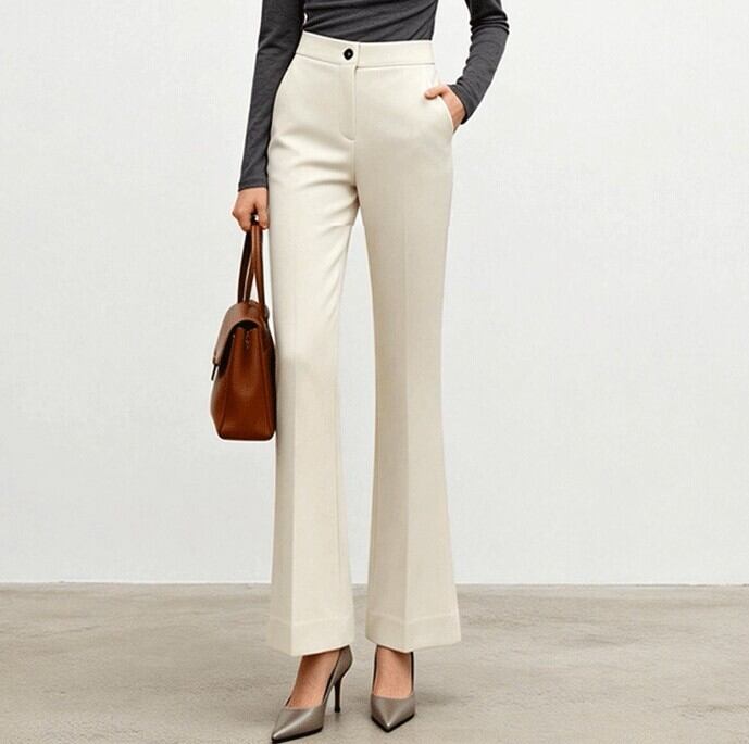 ハイウエストとスリムフレアデザインがスタイルを引き締めます。