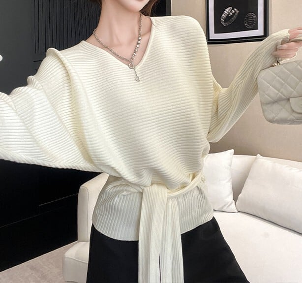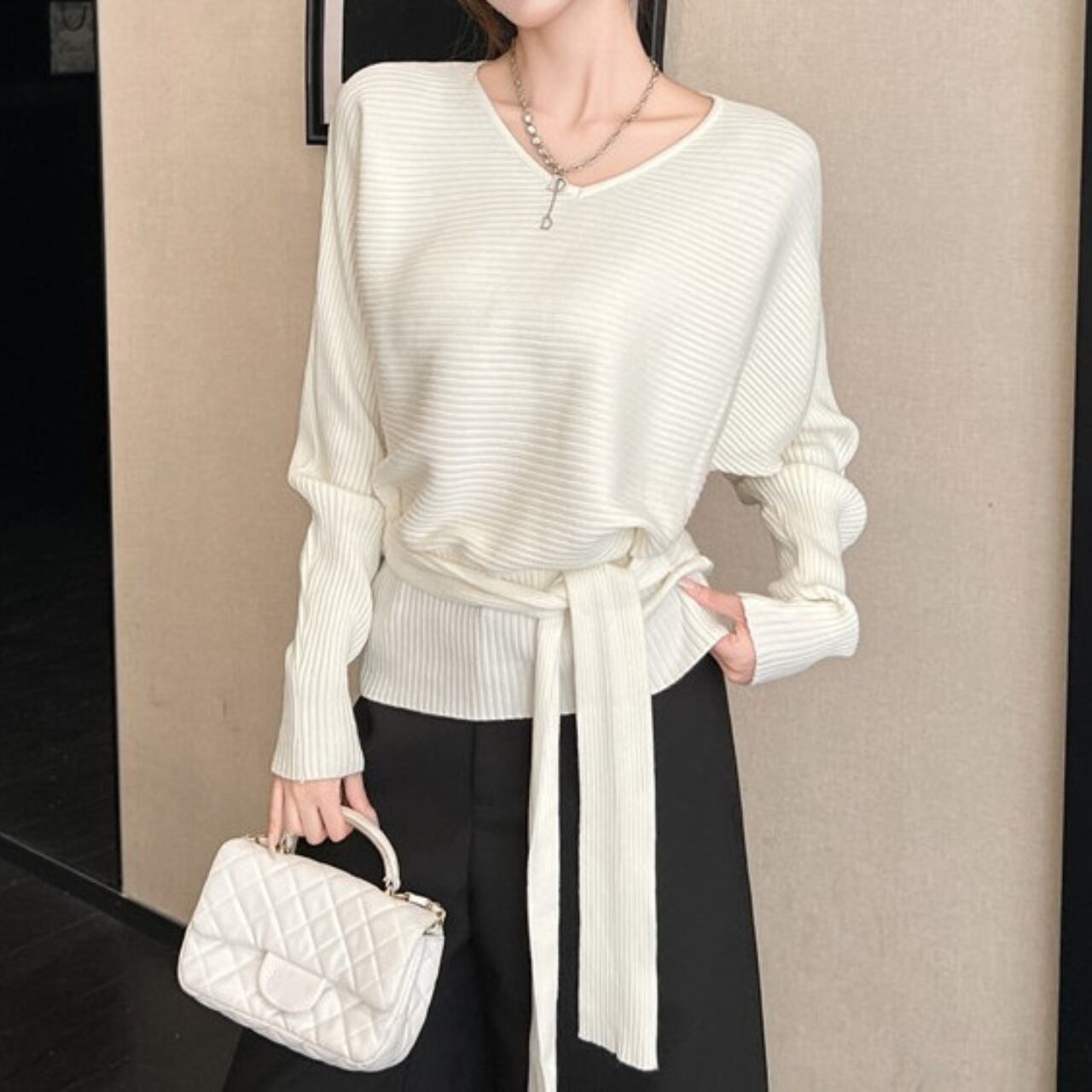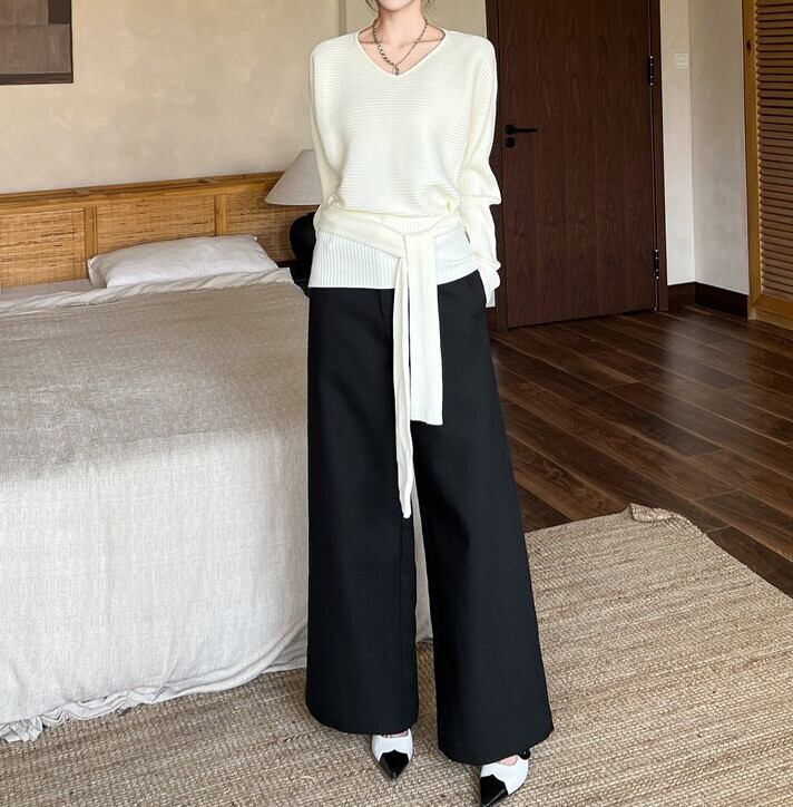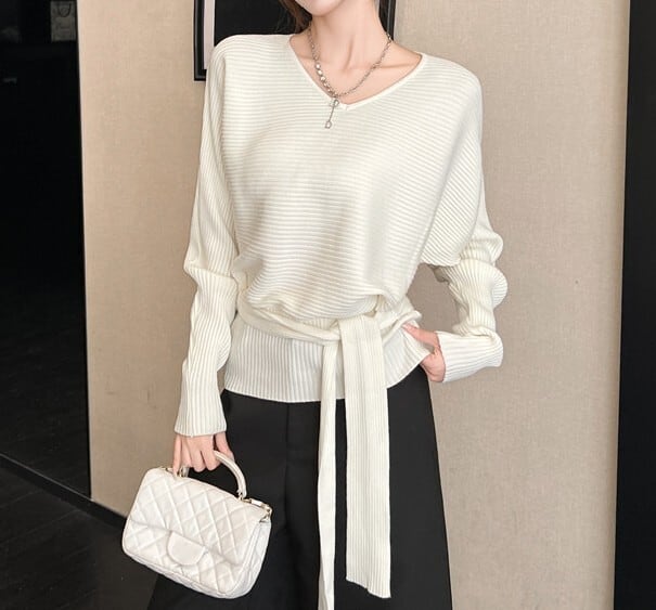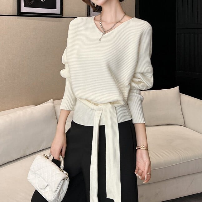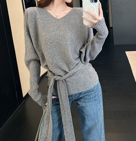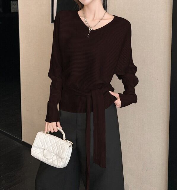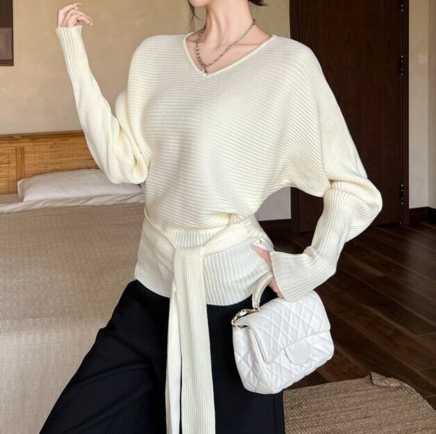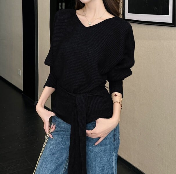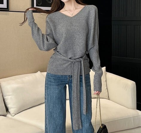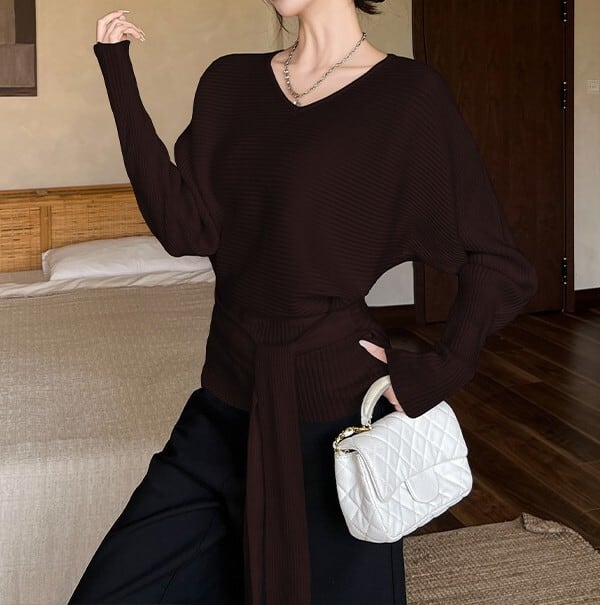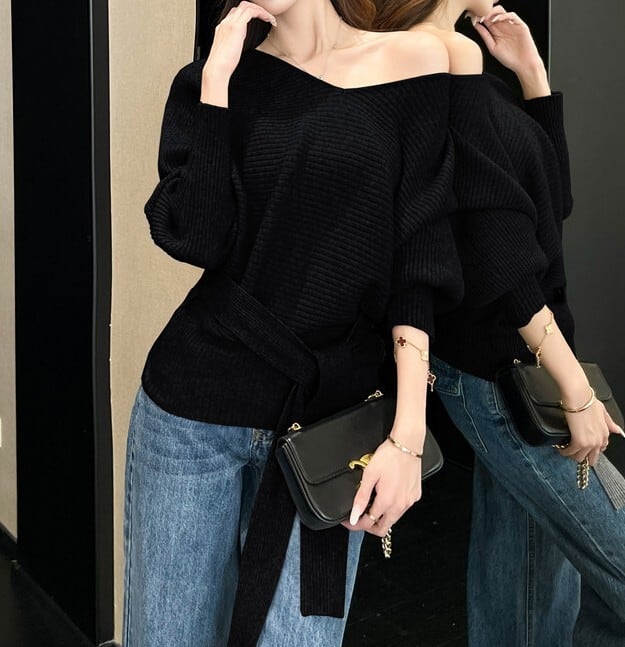ウエストストラップでアレンジできるニットです。