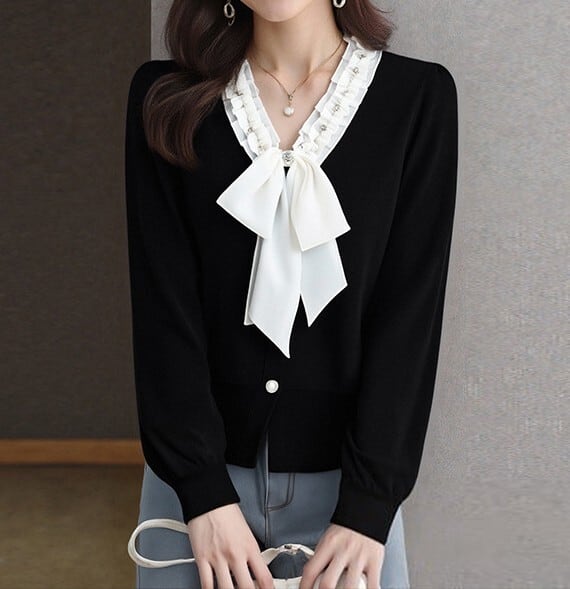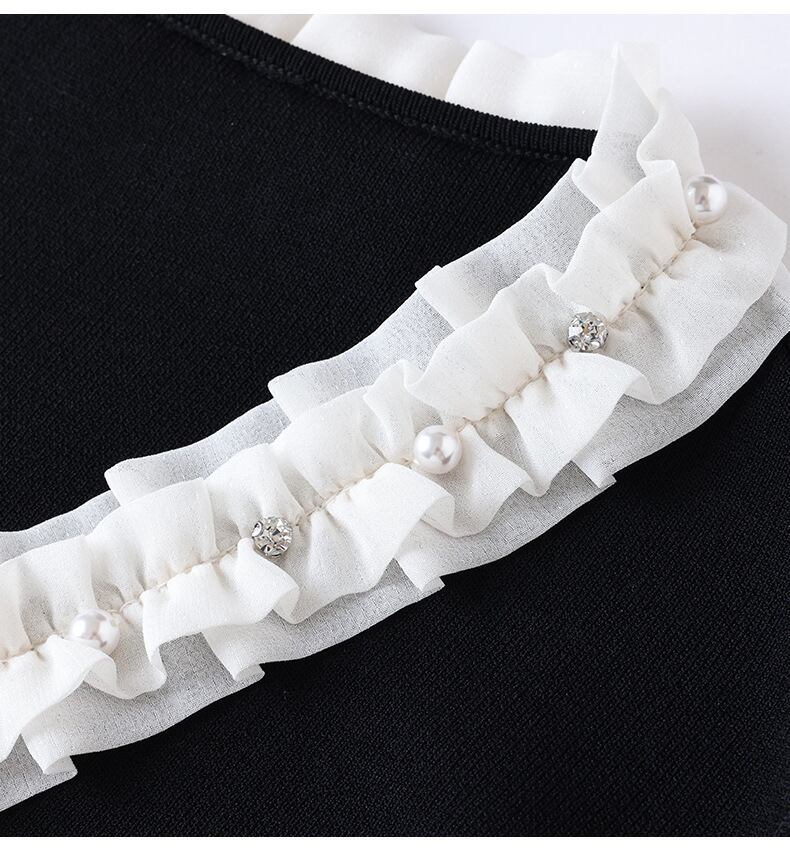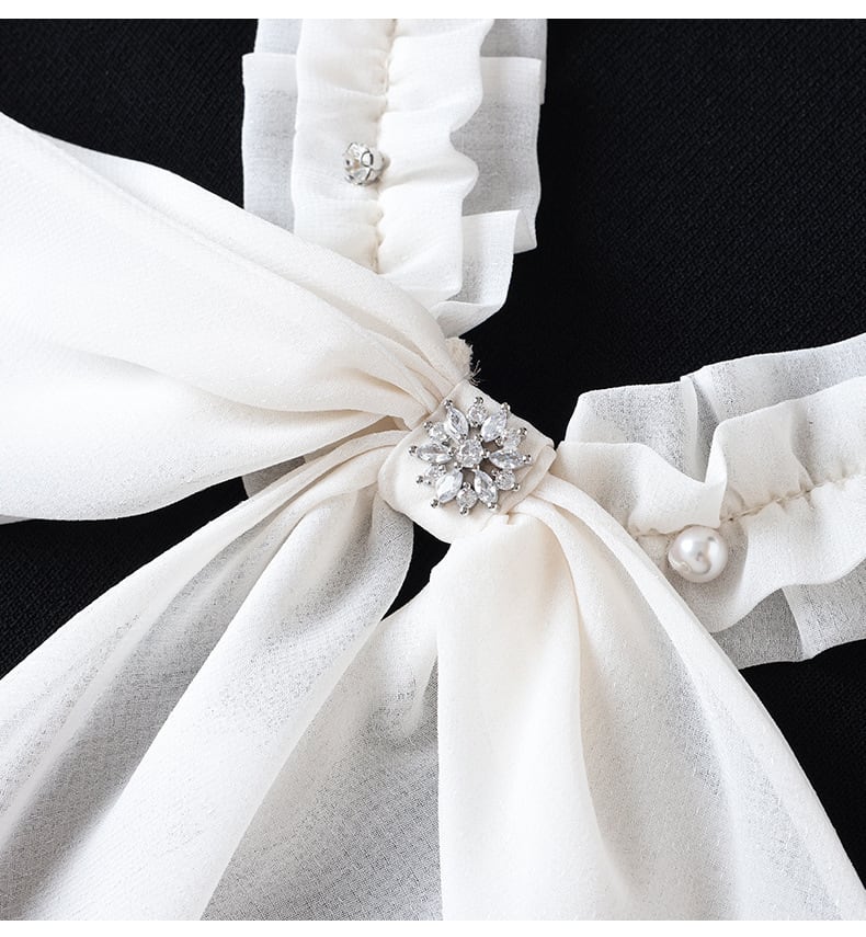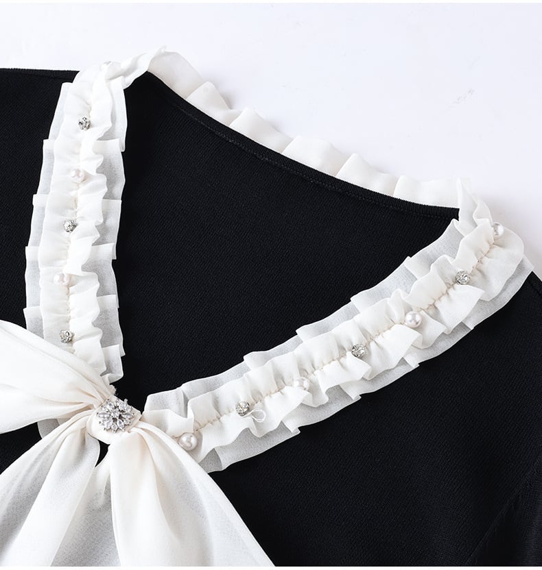 着用するだけで大人可愛い雰囲気が漂うチェストタイエレガントビーズステッチスリムニット。