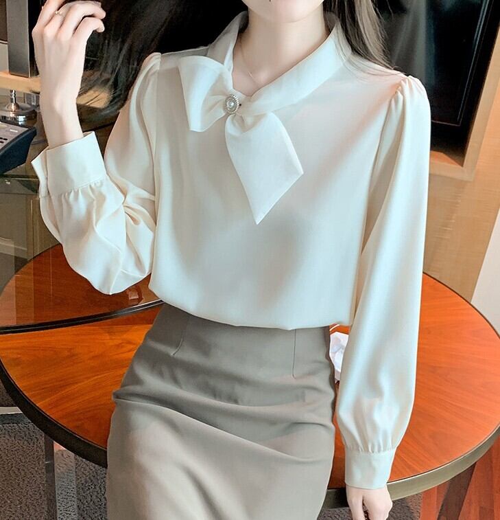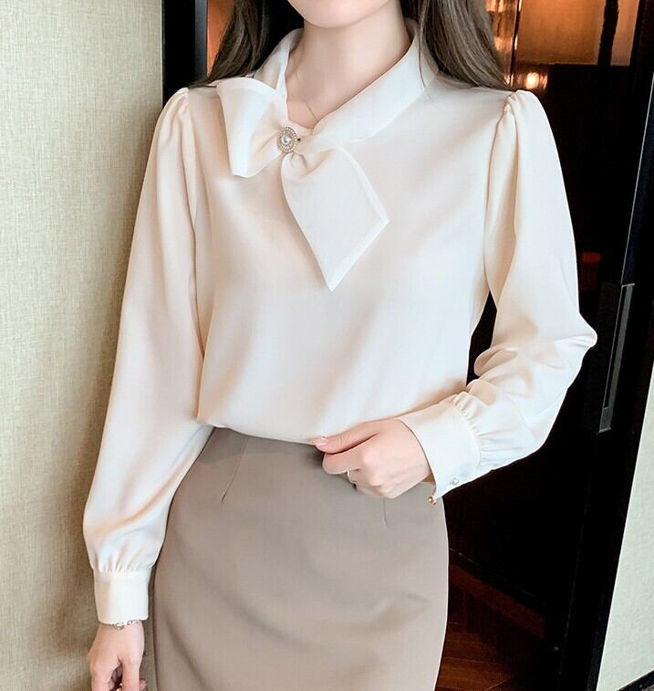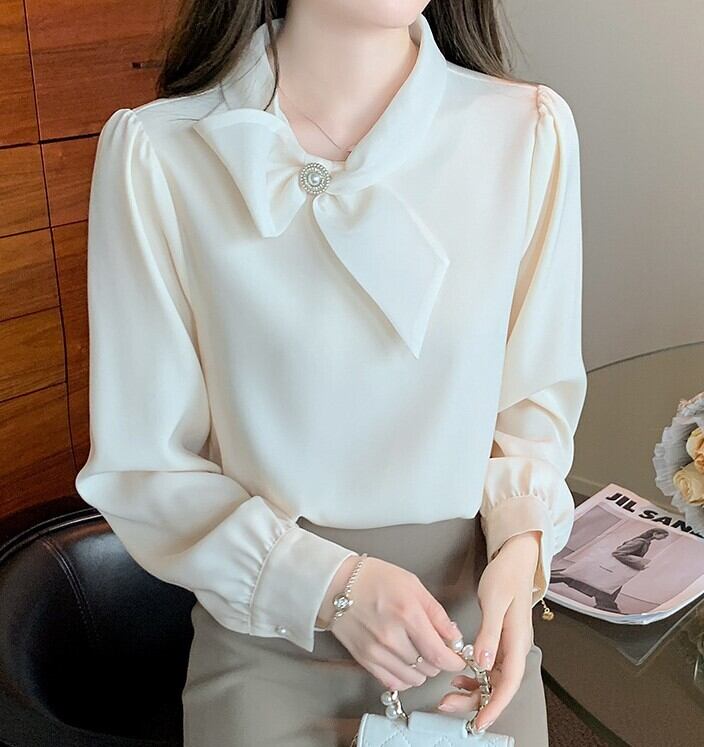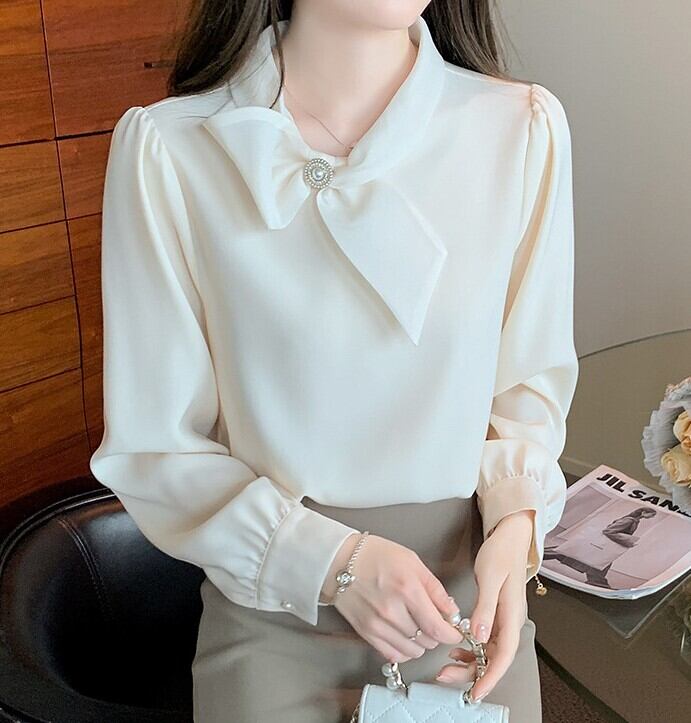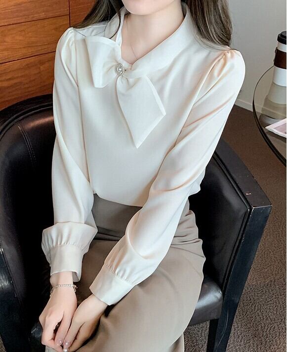 Chest tie elegant slim chiffon shirt