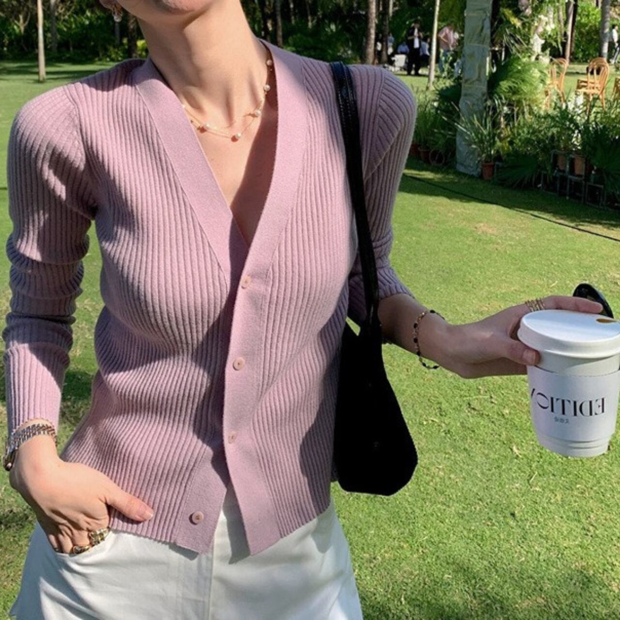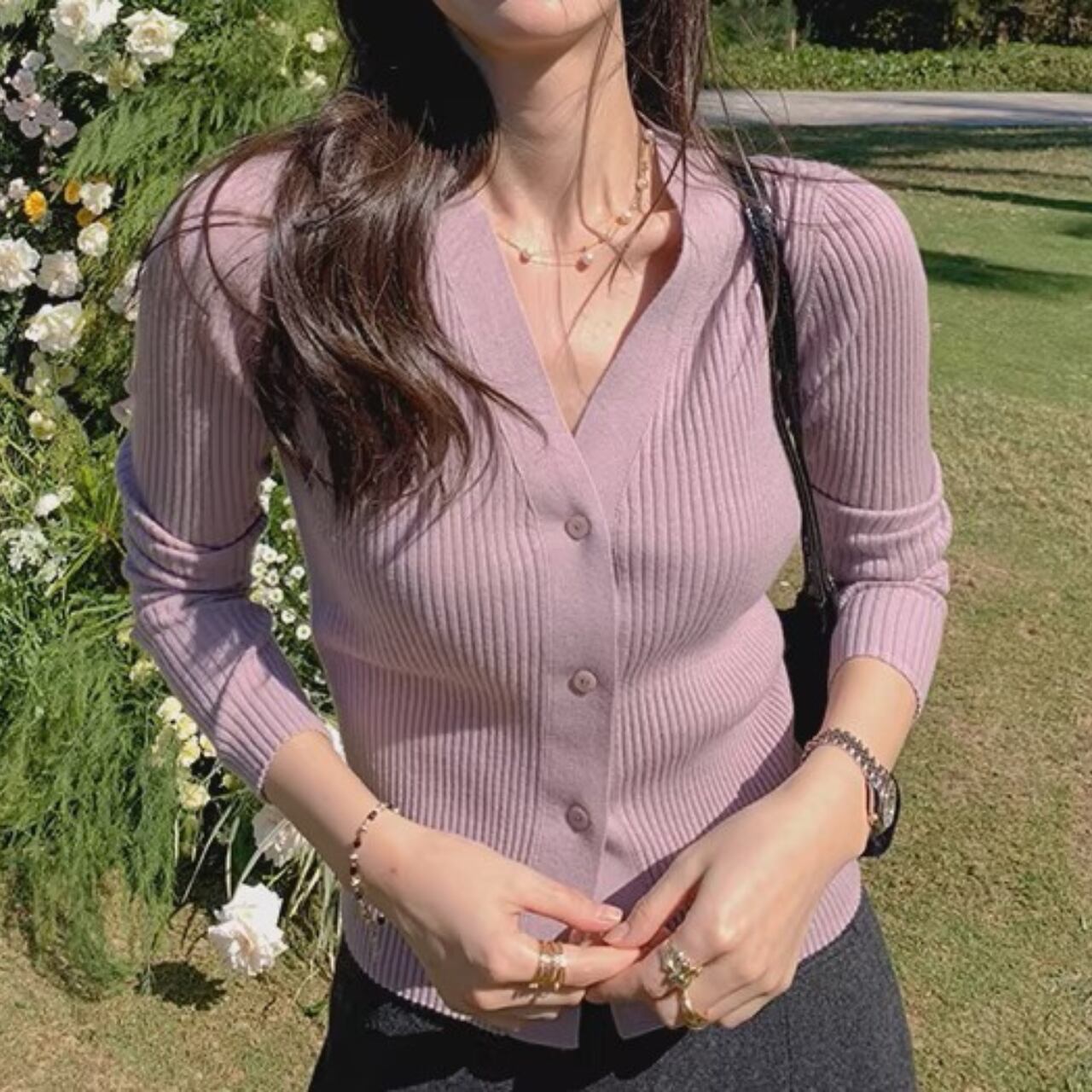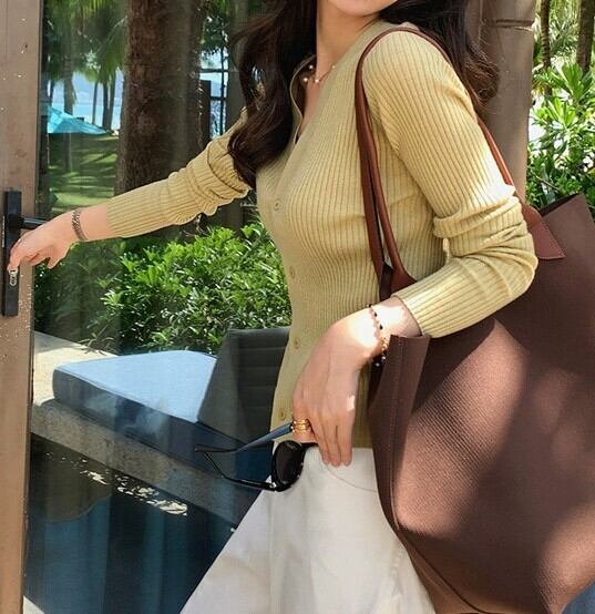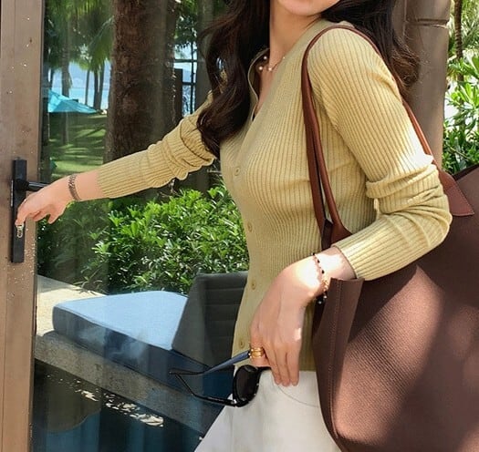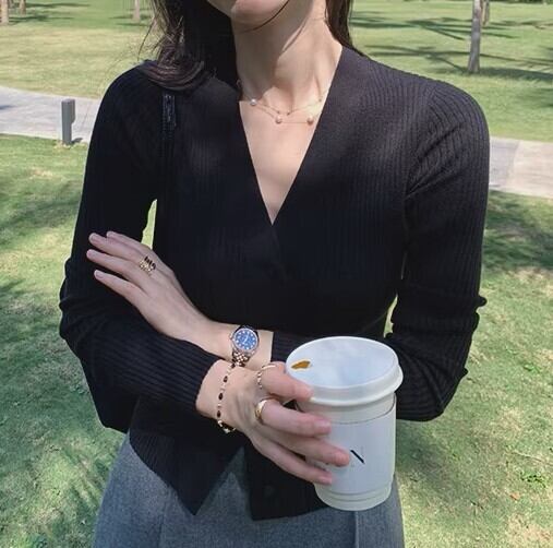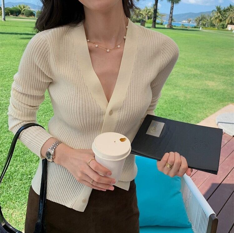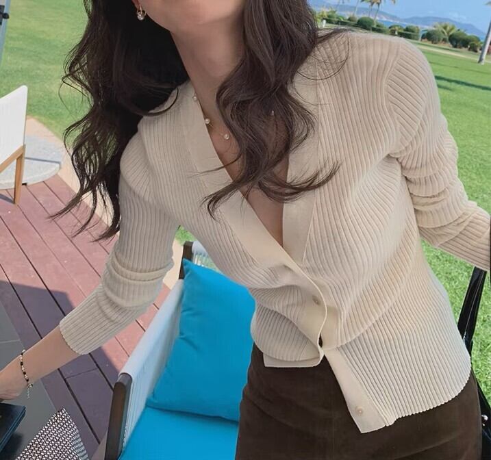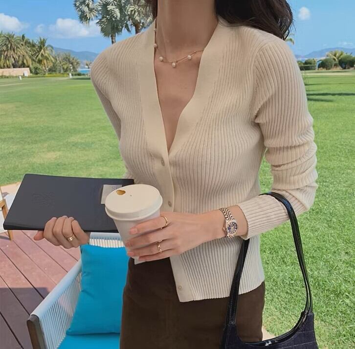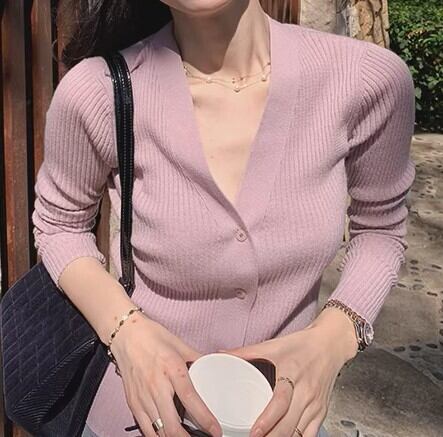 V neck elegant slim fit knit cardigan