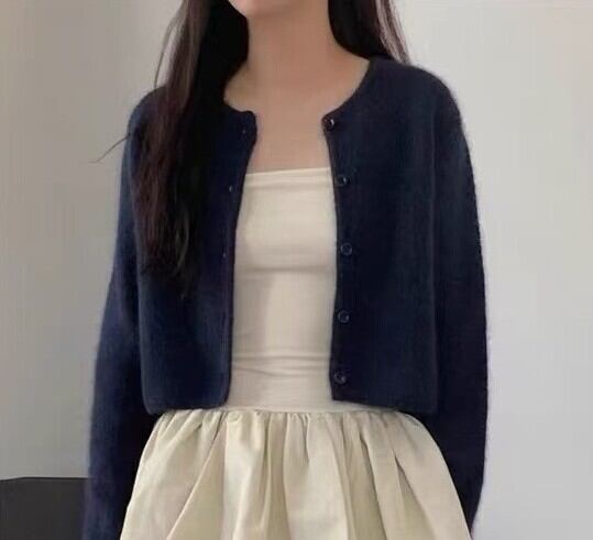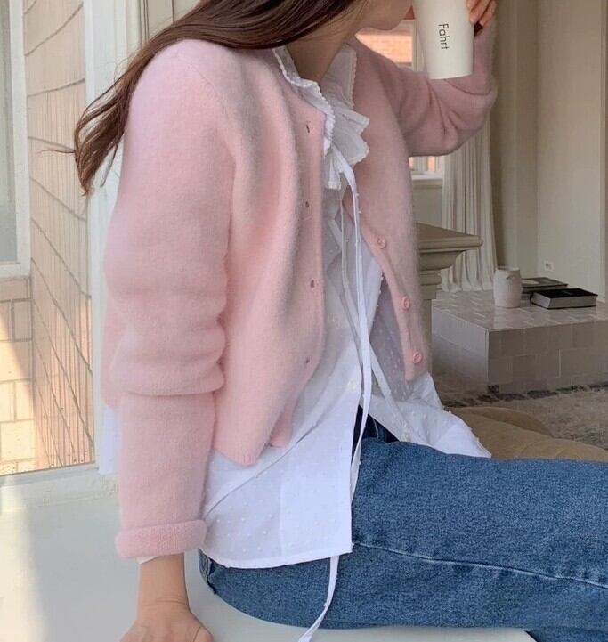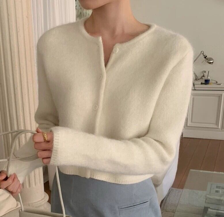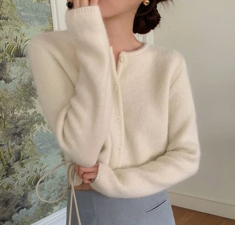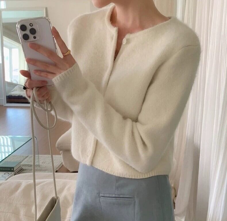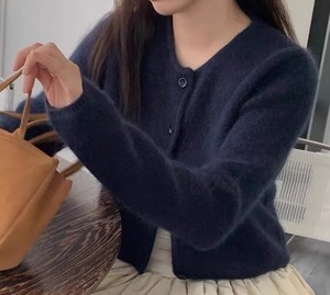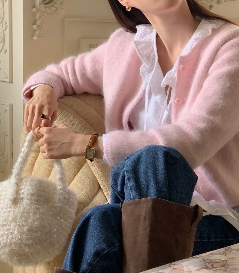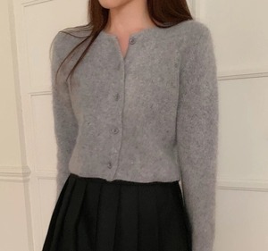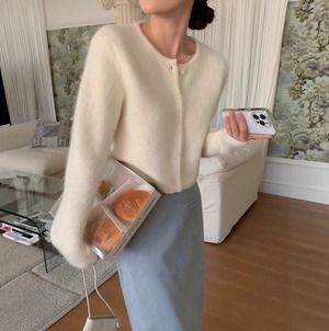 Single breast elegant fluffy knit cardigan ( 4color )