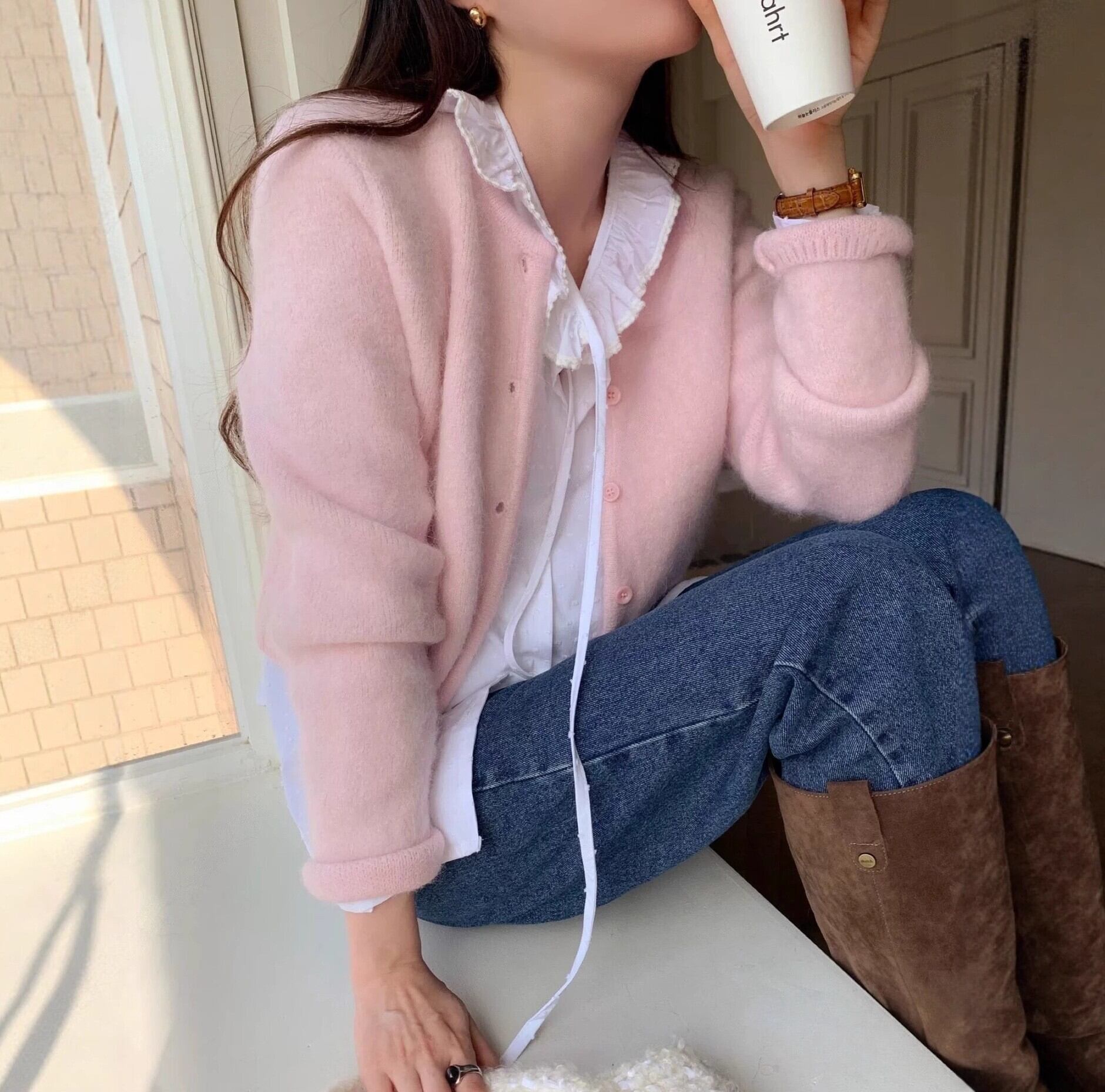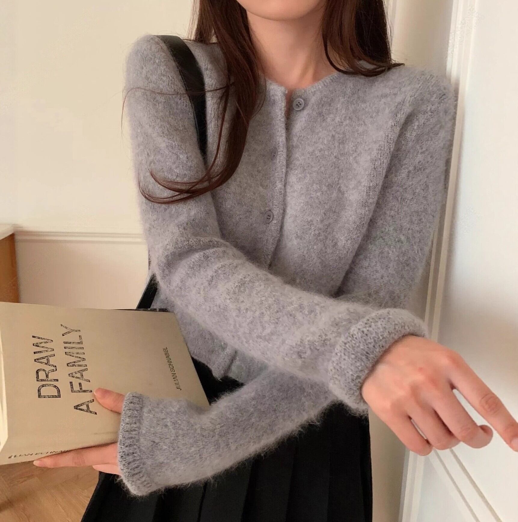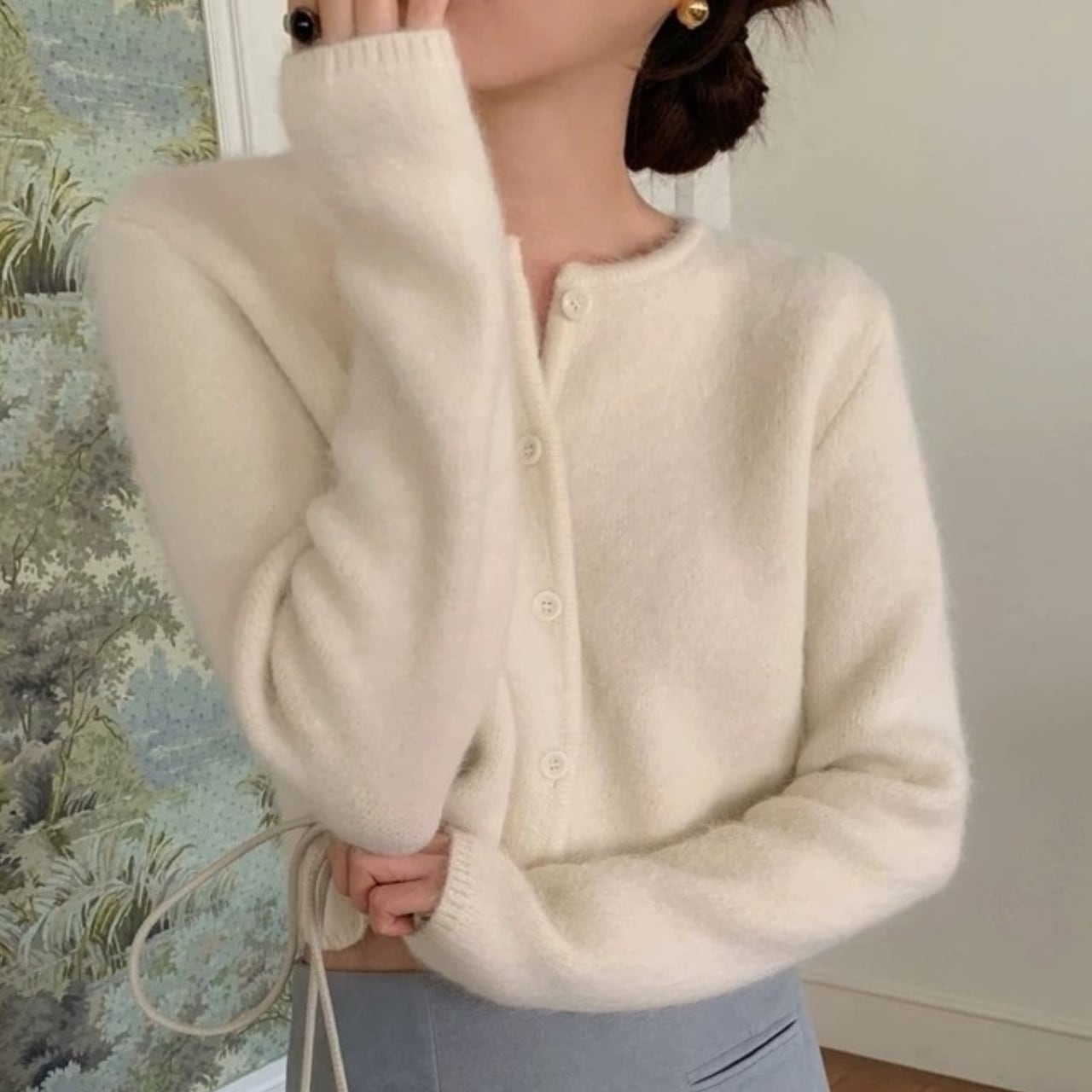 Single breast elegant fluffy knit cardigan ( 4color )