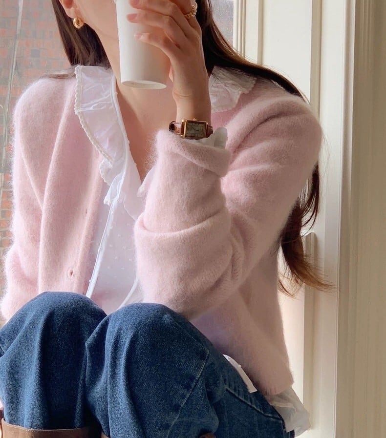 着用するだけで大人可愛い雰囲気が漂うシングルブレストエレガントフラッフィーニットカーディガン。