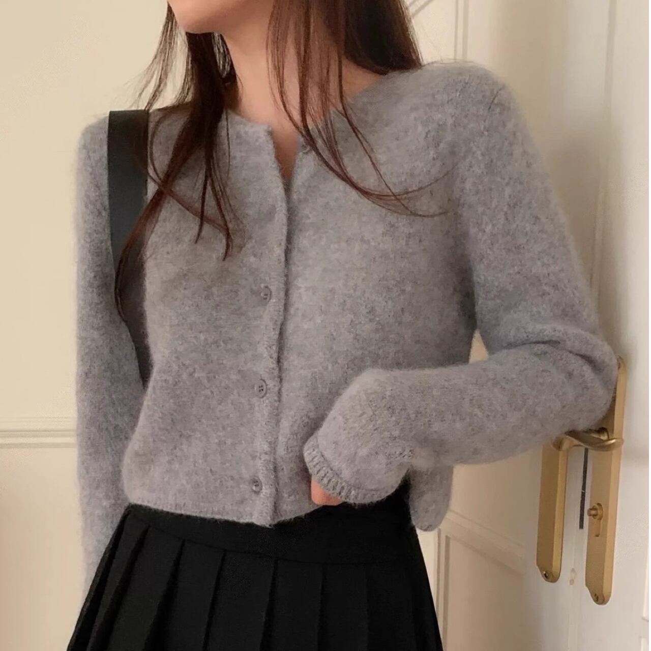 Single breast elegant fluffy knit cardigan