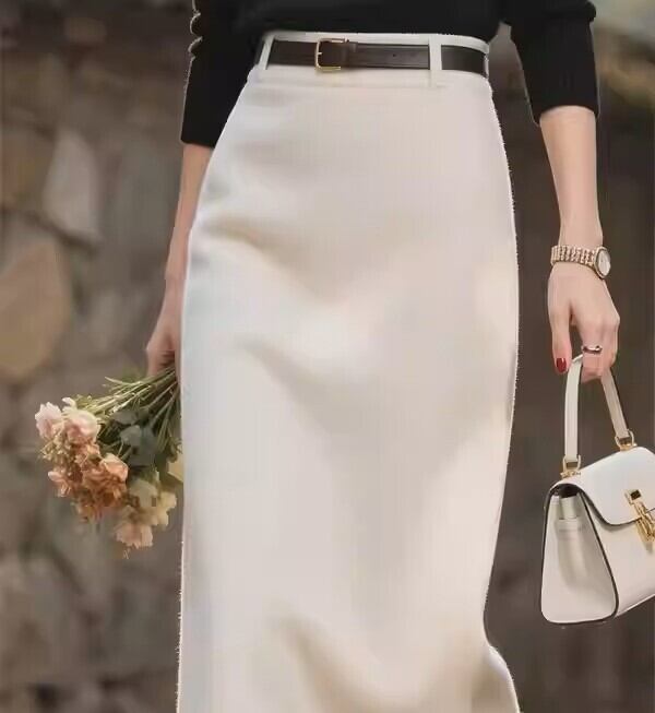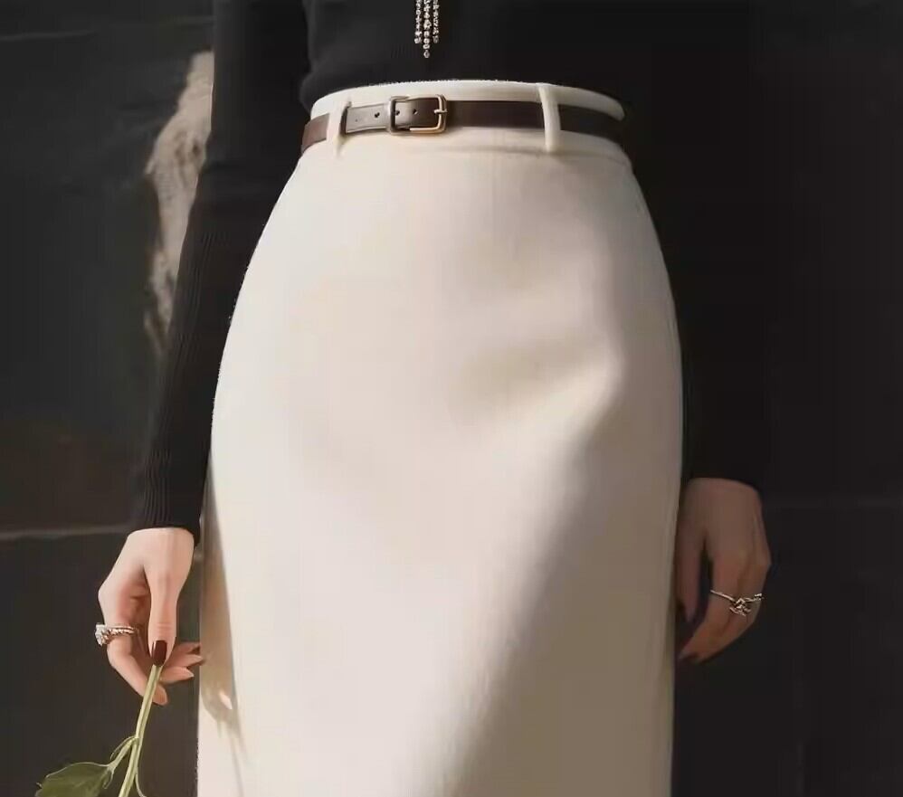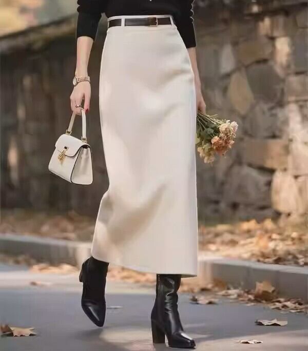着用するだけでエレガントな雰囲気が漂うハイウエストエレガントロングスリムウールスカート。
