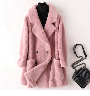 羽織るだけでエレガントな雰囲気が漂うエレガントベルベットシープスキンミドルコート。