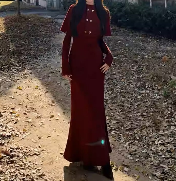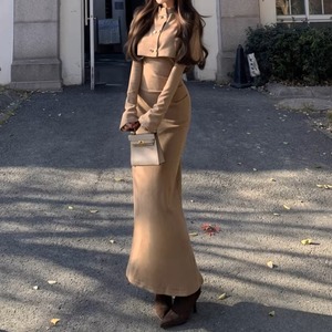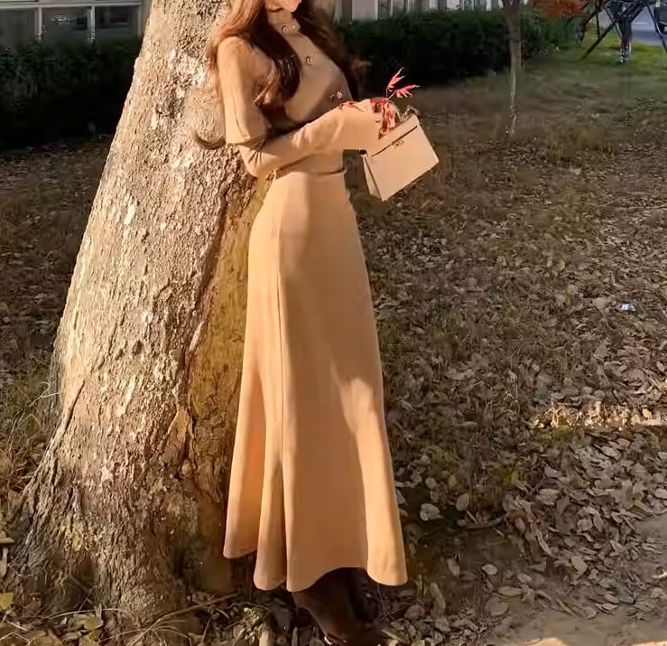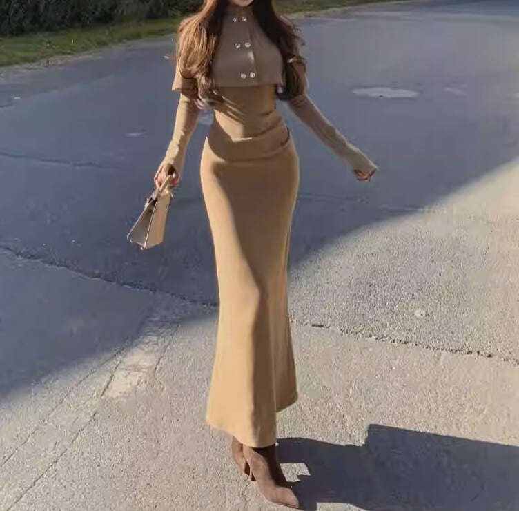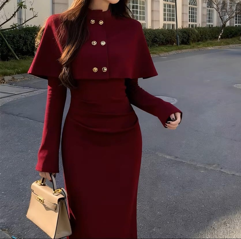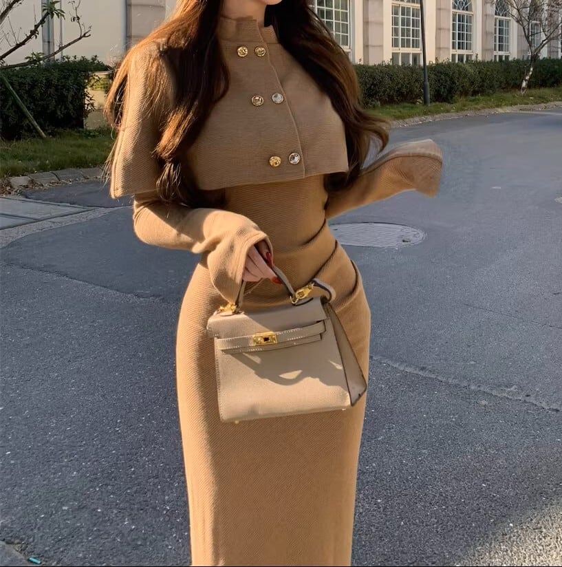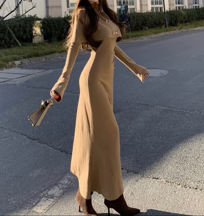 Double breast elegant slim fit shawl knit dress ( 2color )