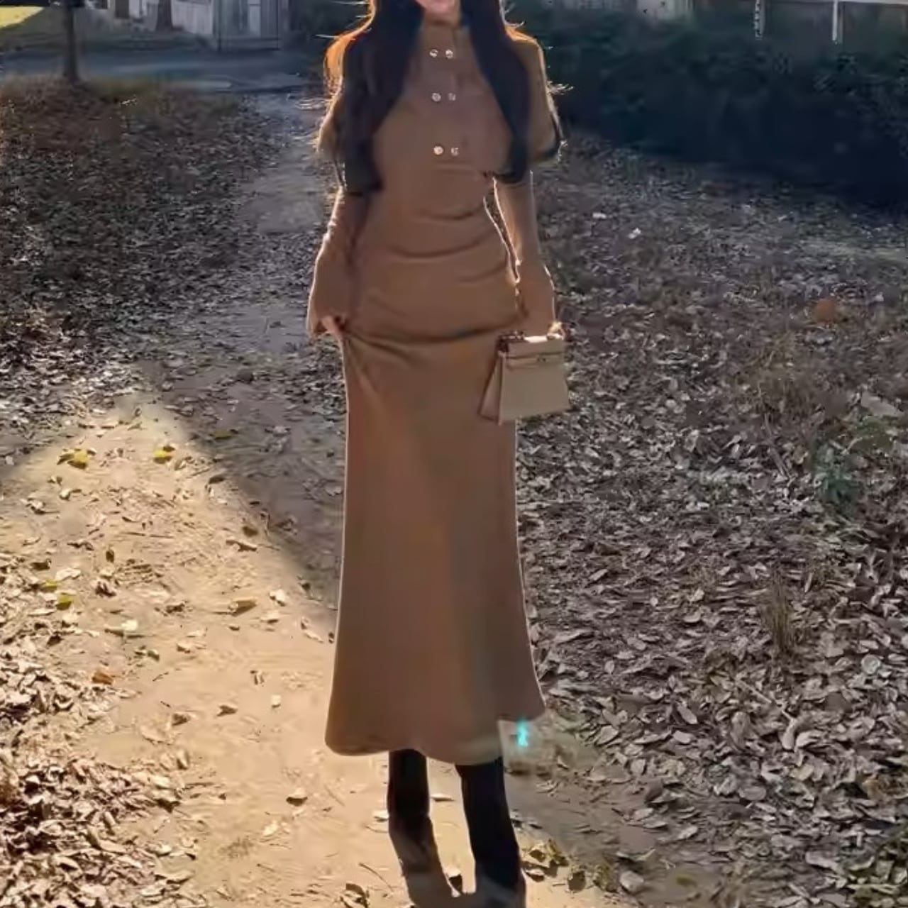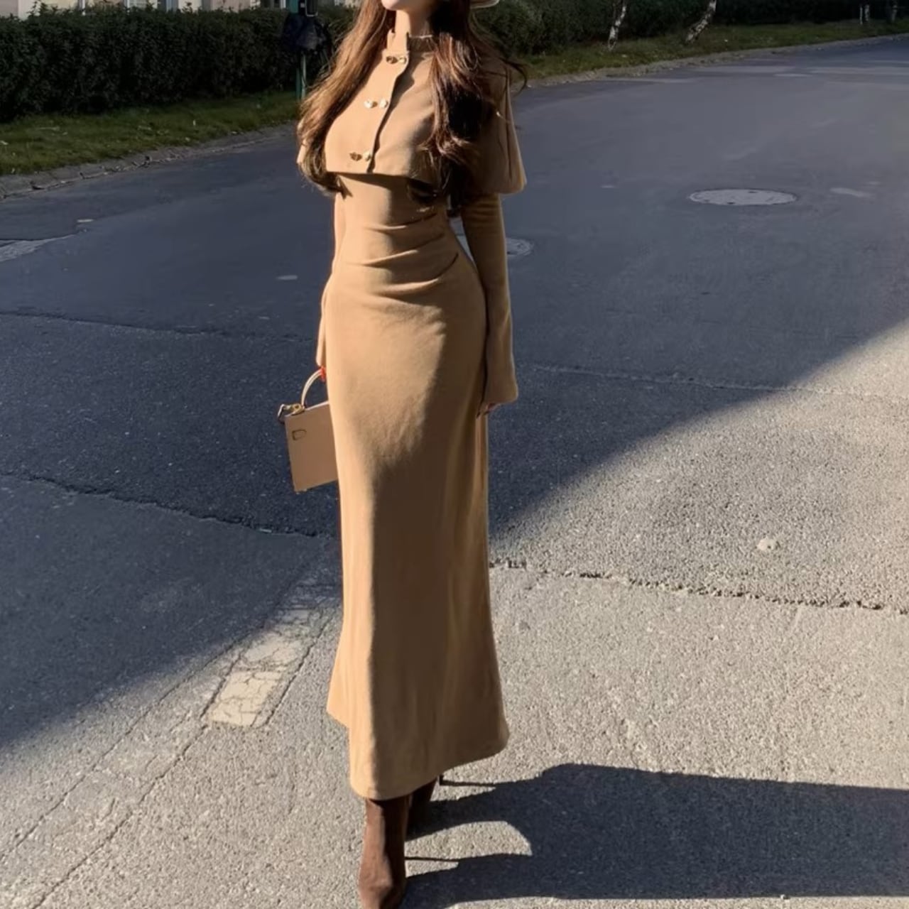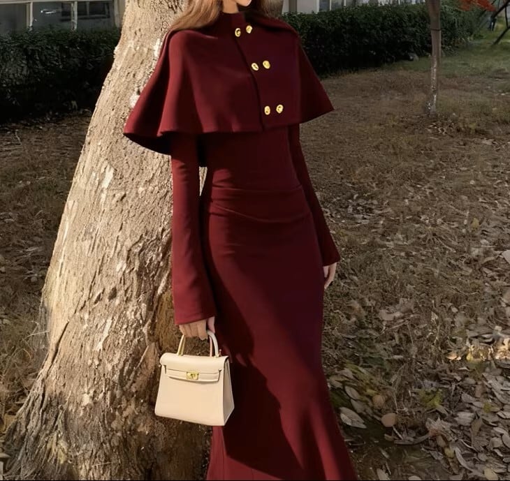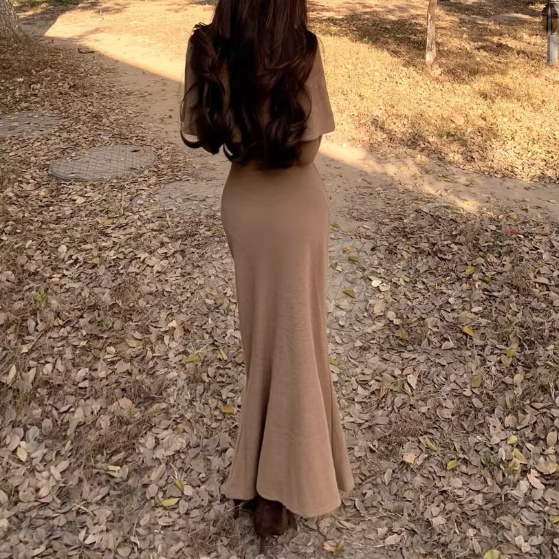 Double breast elegant slim fit shawl knit dress ( 2color )