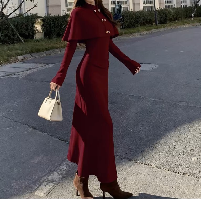 Double breast elegant slim fit shawl knit dress