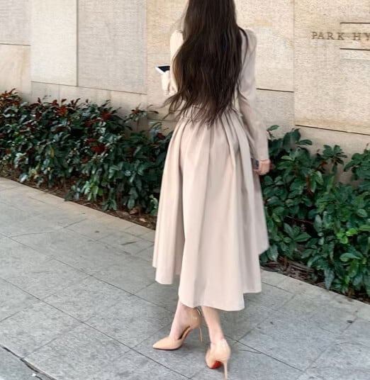 ハイウエスト、スイングデザインがスタイルを引き締めます。