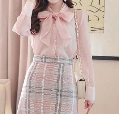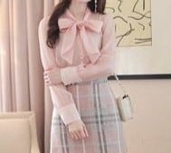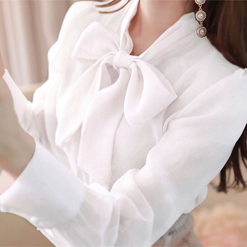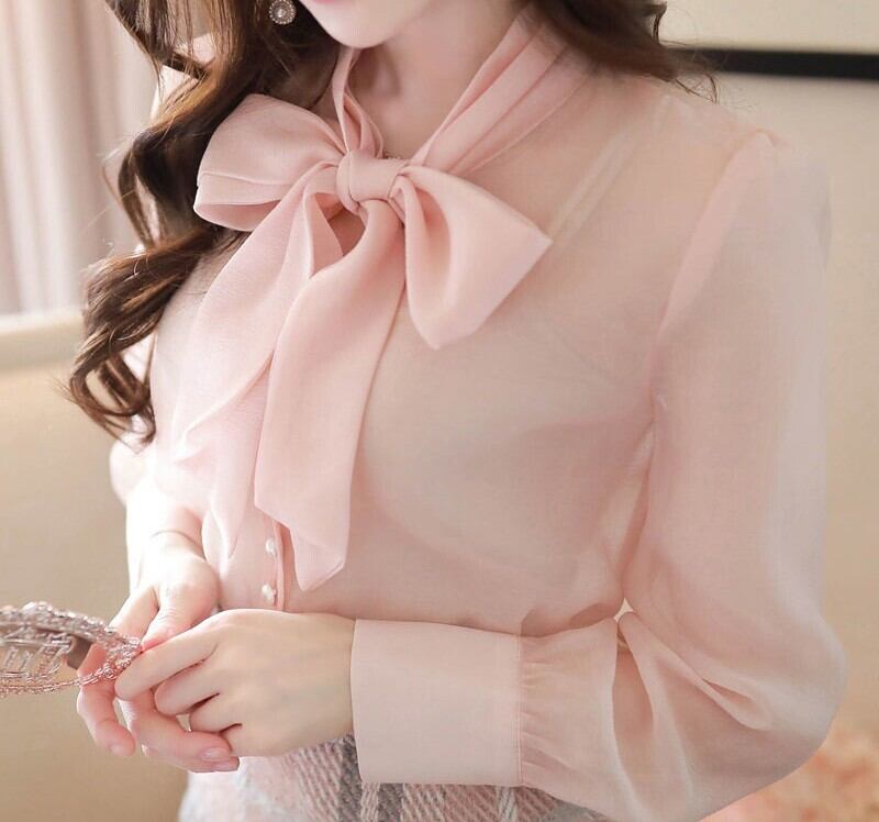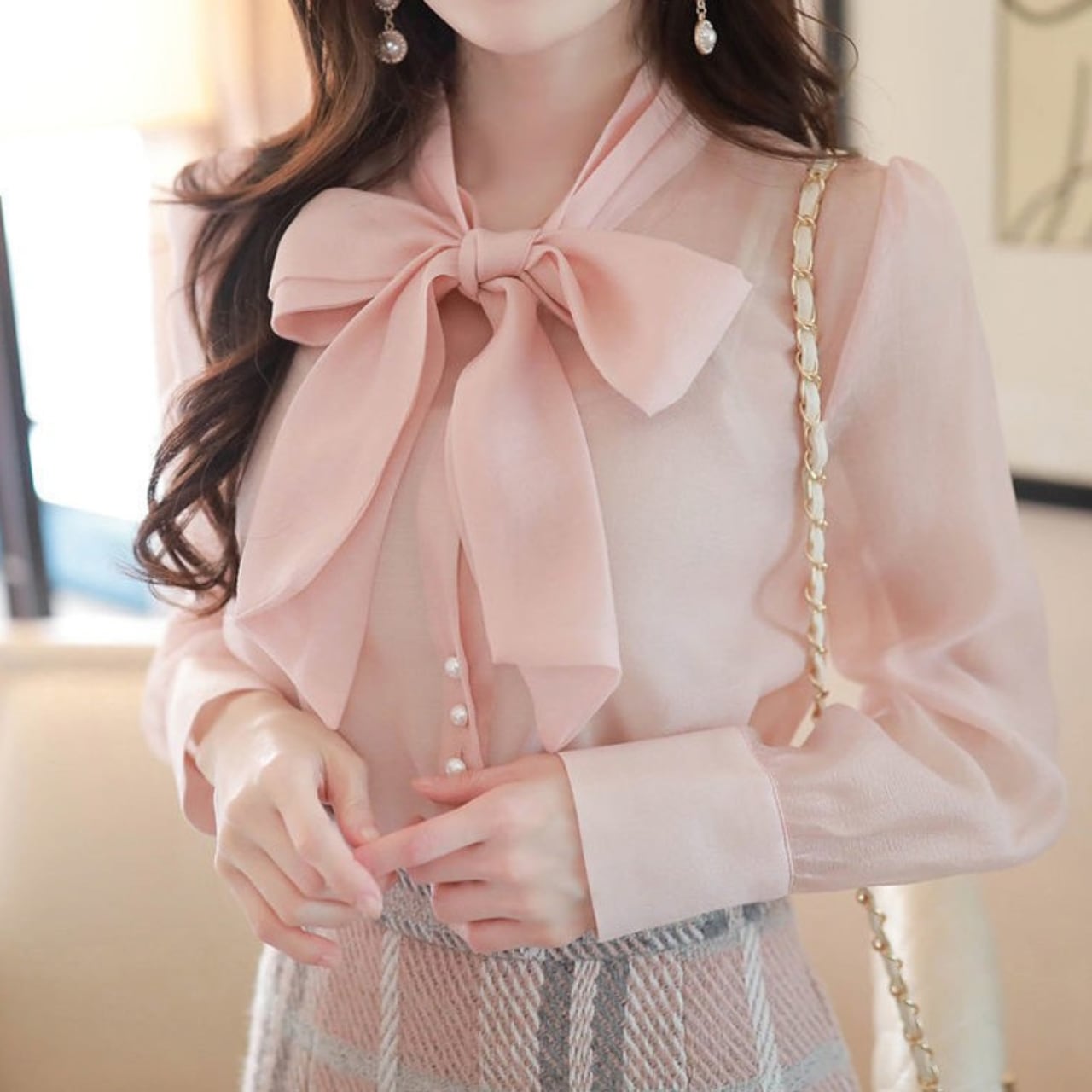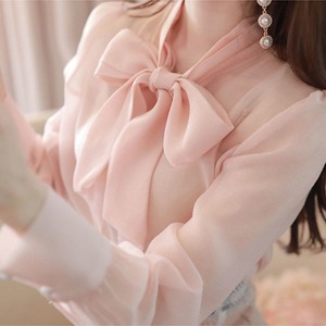 Chest tie elegant pearl stitch chiffon blouse ( 2color )